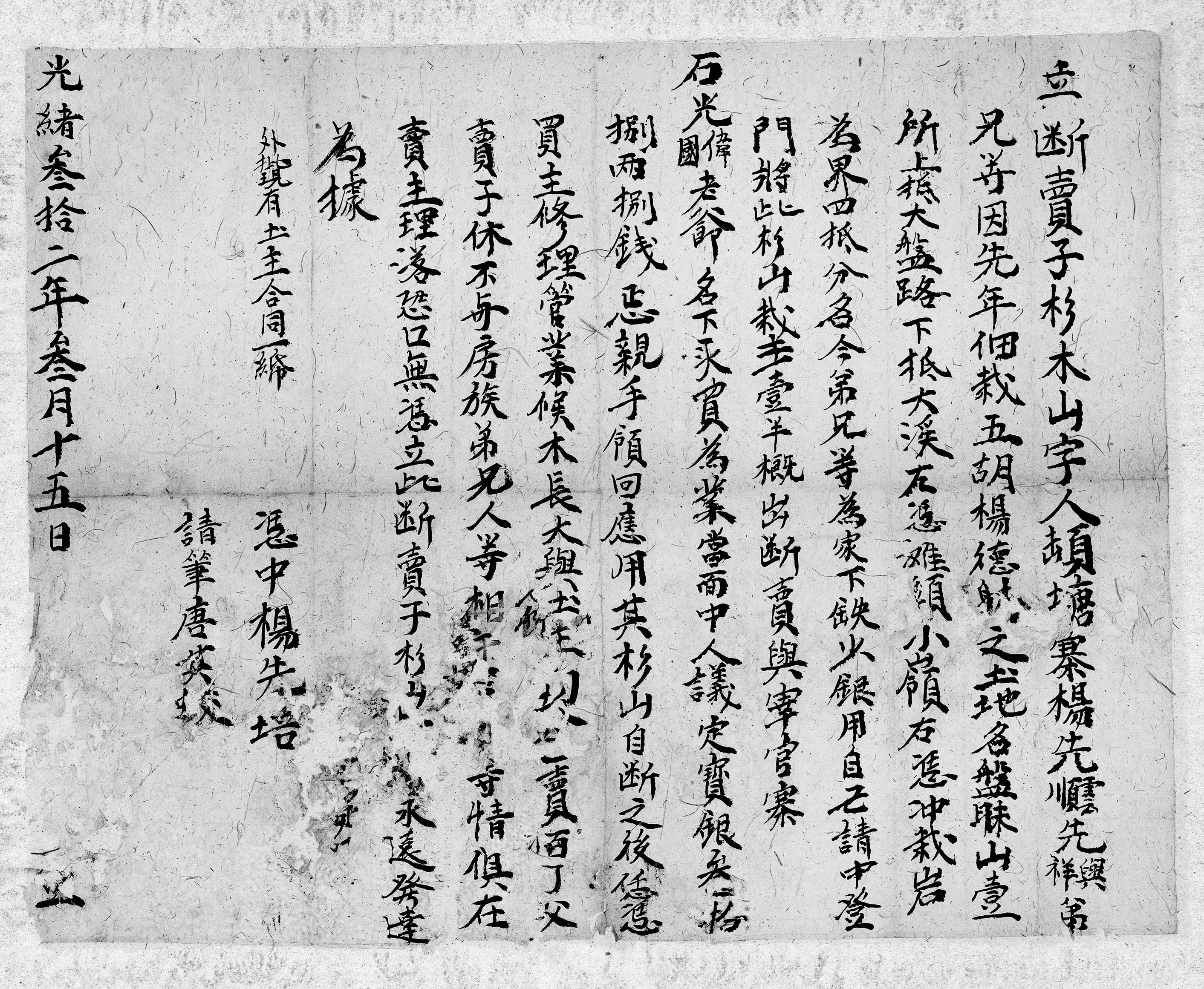 石弟晚斷賣山場杉木字(光緒十九年四月初一日) LP-120-54