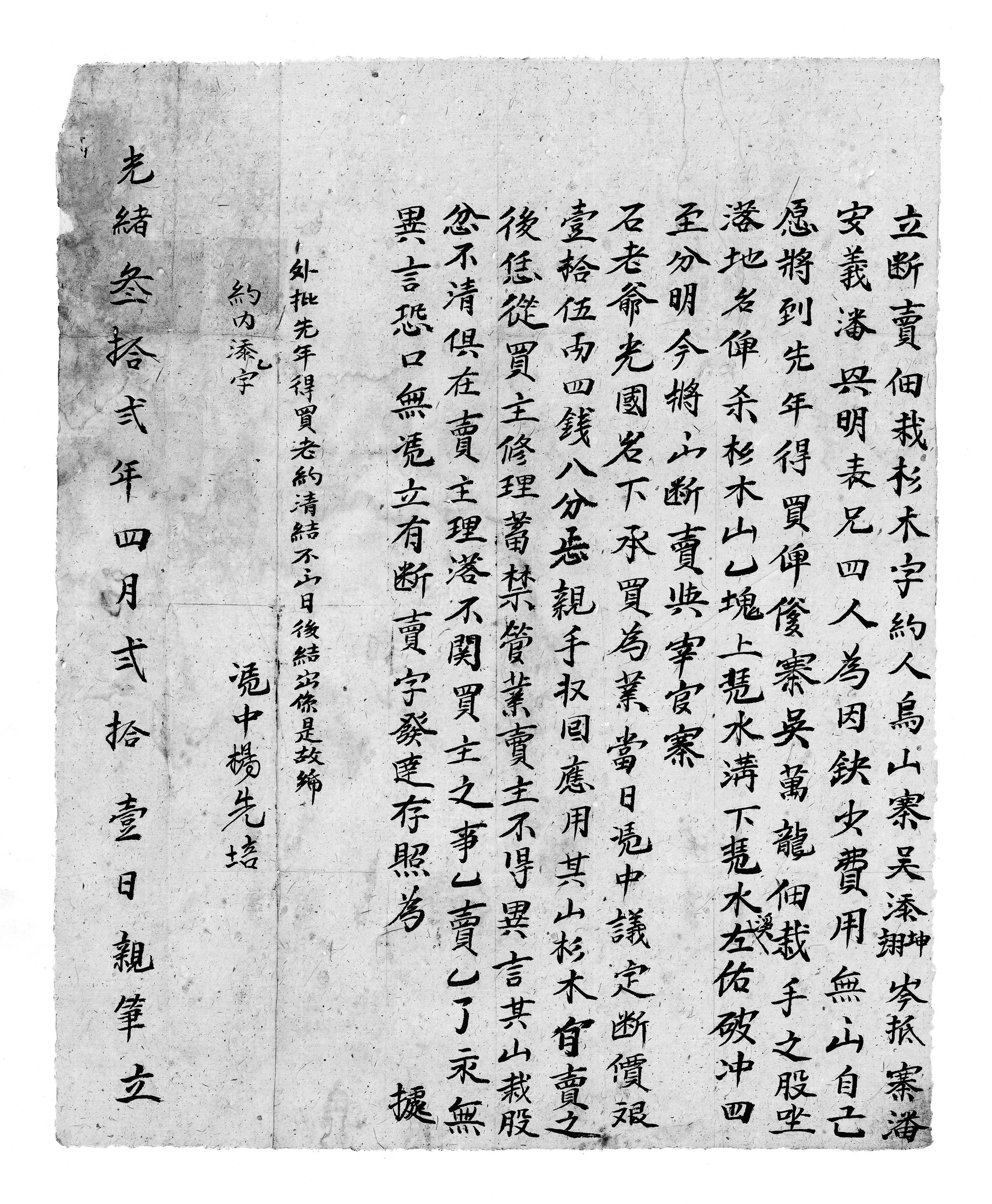姜正洪斷賣杉木土主字(光緒二十四年五月二十五日) LP-80-27
