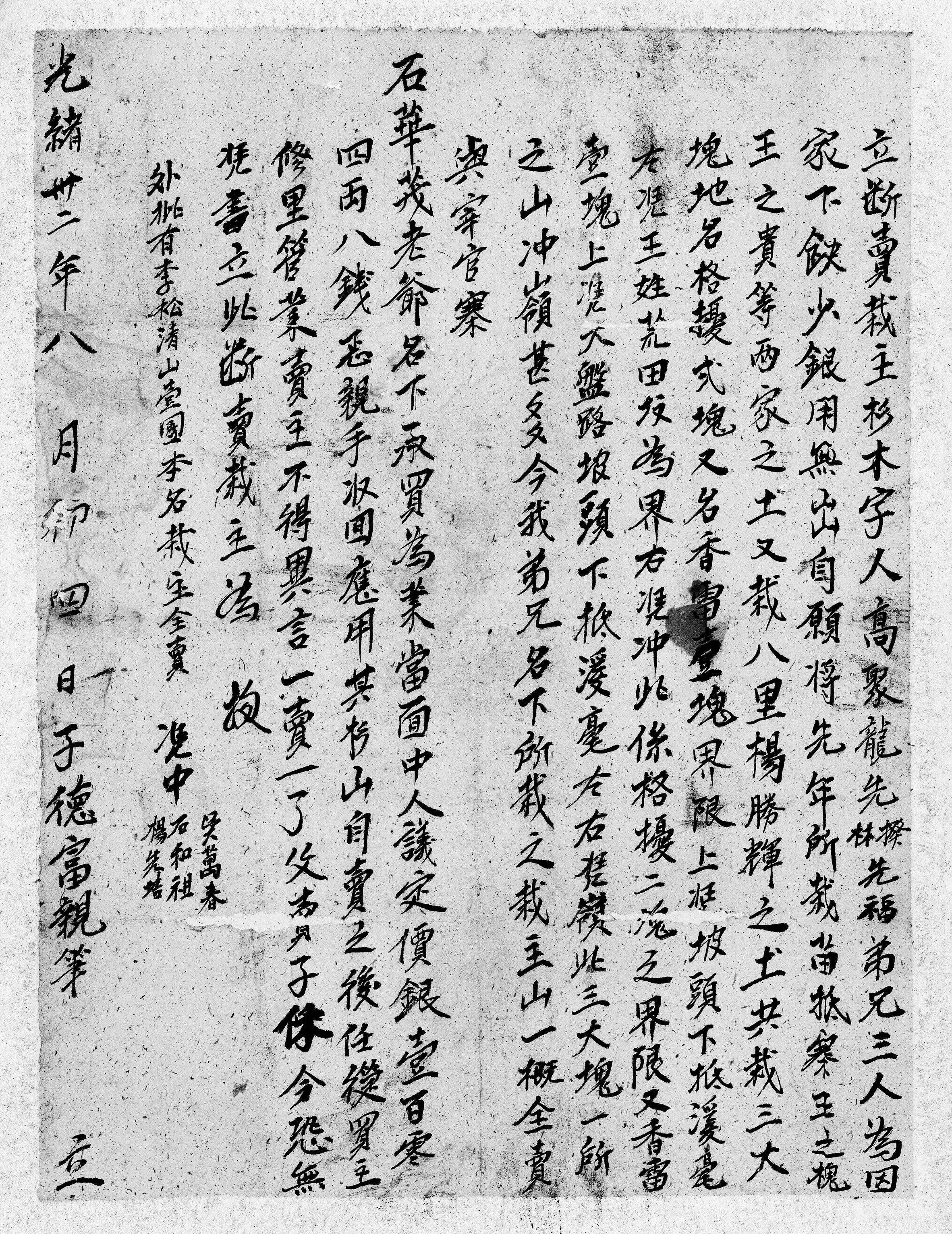 石焕章典賣山場字(光緒十六年閏二月□日) LP-120-49