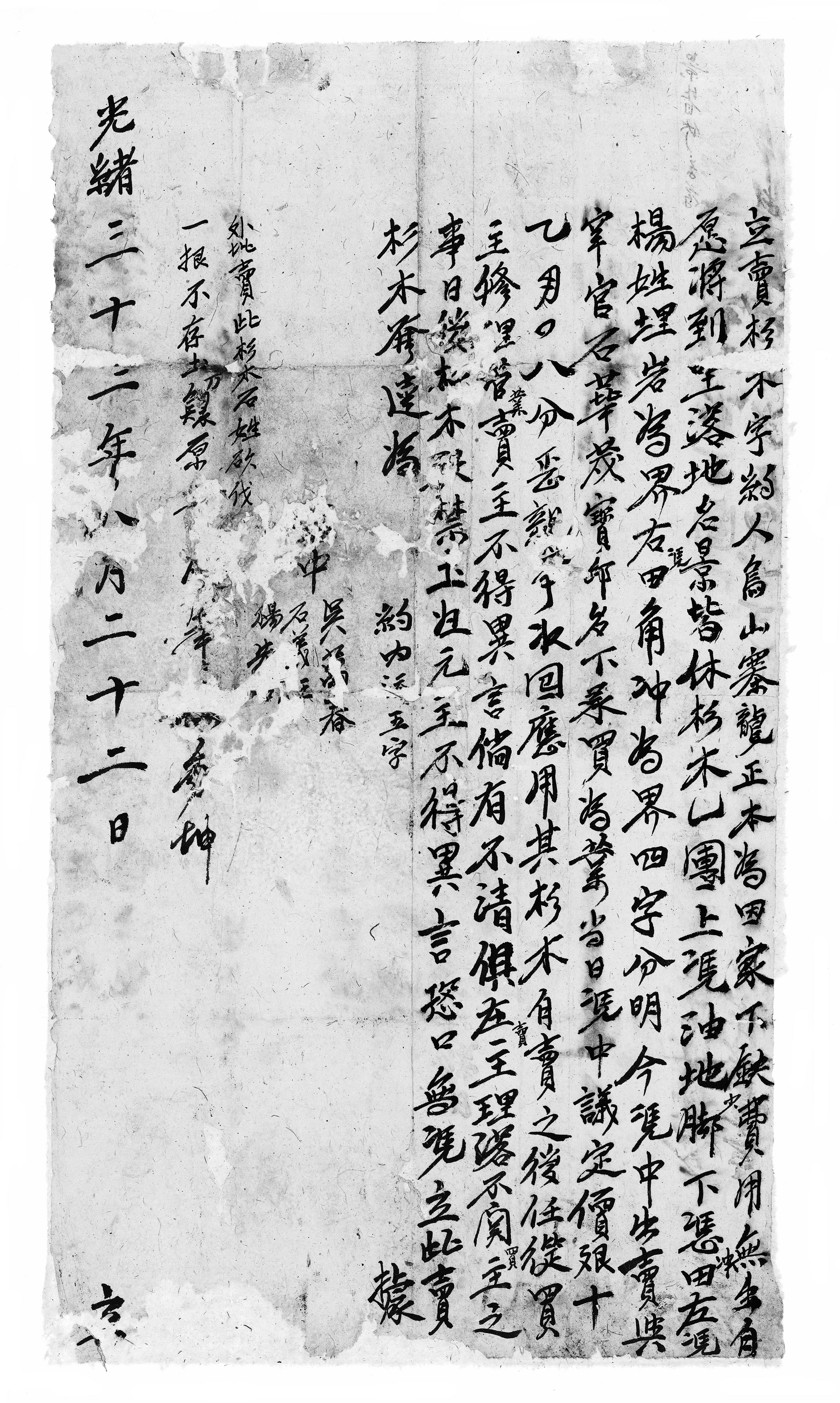 石光和斷賣山場杉木字約(光緒三十一年八月初四日) LP-76-6