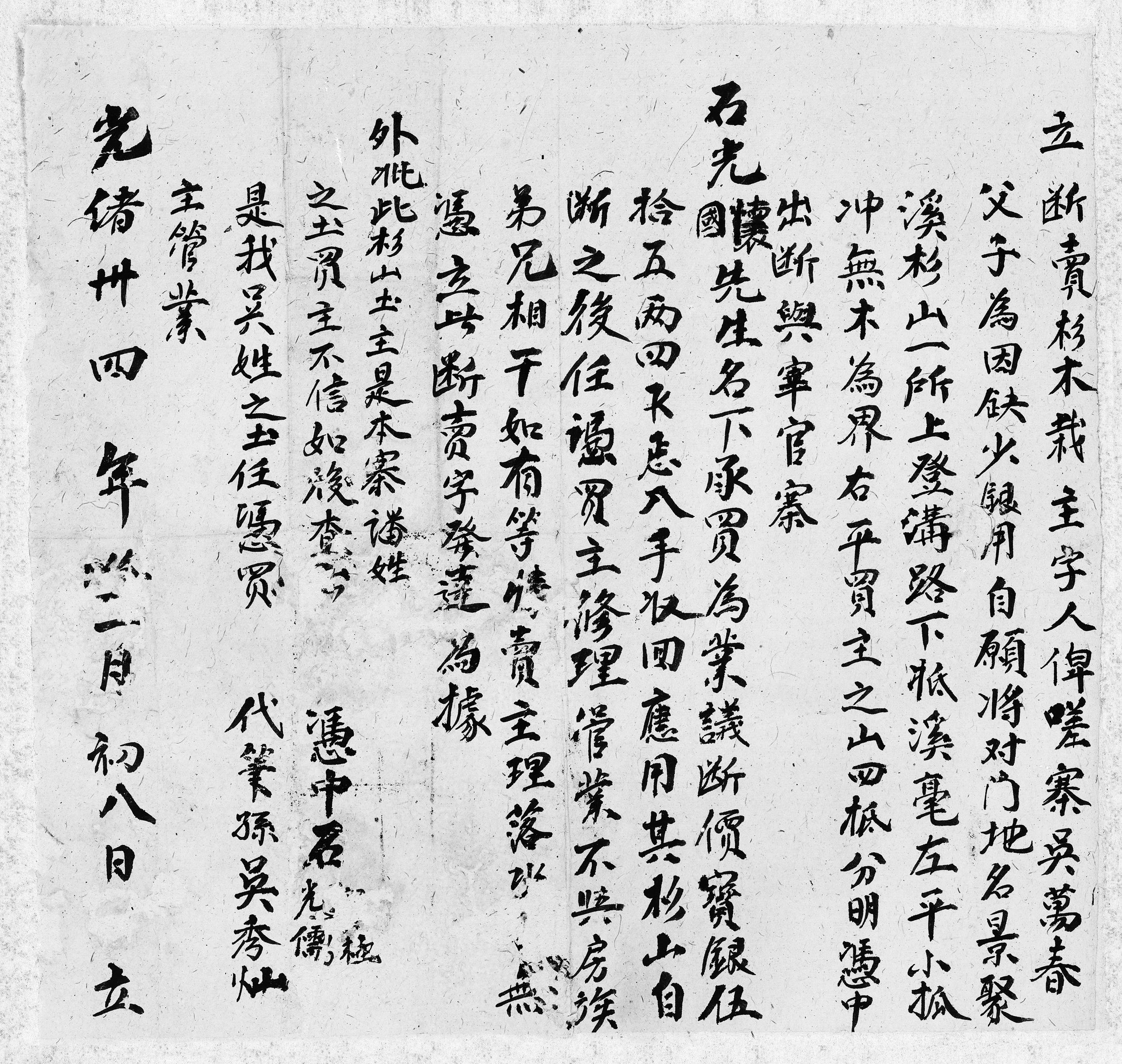 姜正洪斷賣杉木土主字(光緒二十四年五月二十五日) LP-80-27