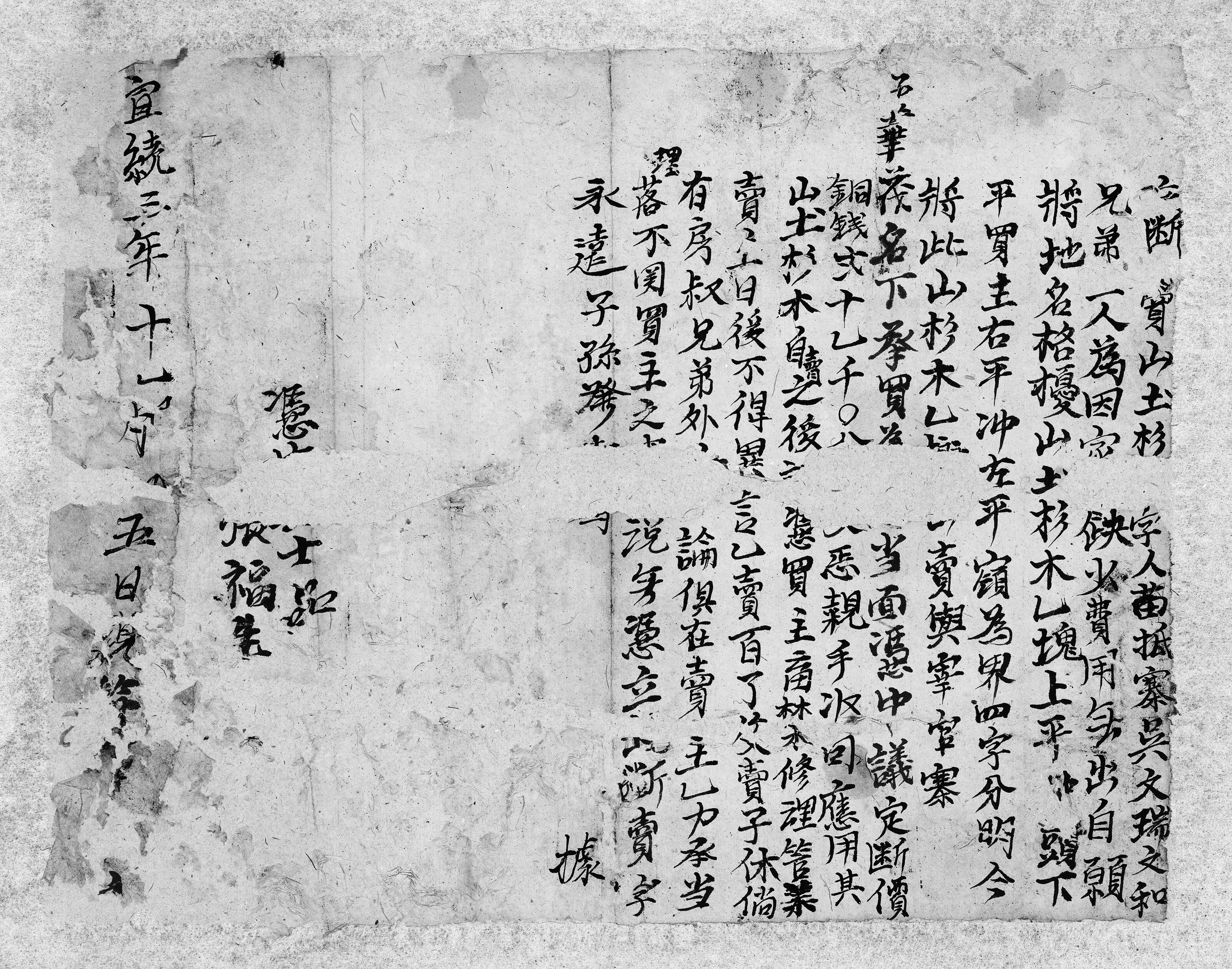 姜文顯父子三人斷賣山場杉木字約(道光三十年十月十五日) LP-120-3