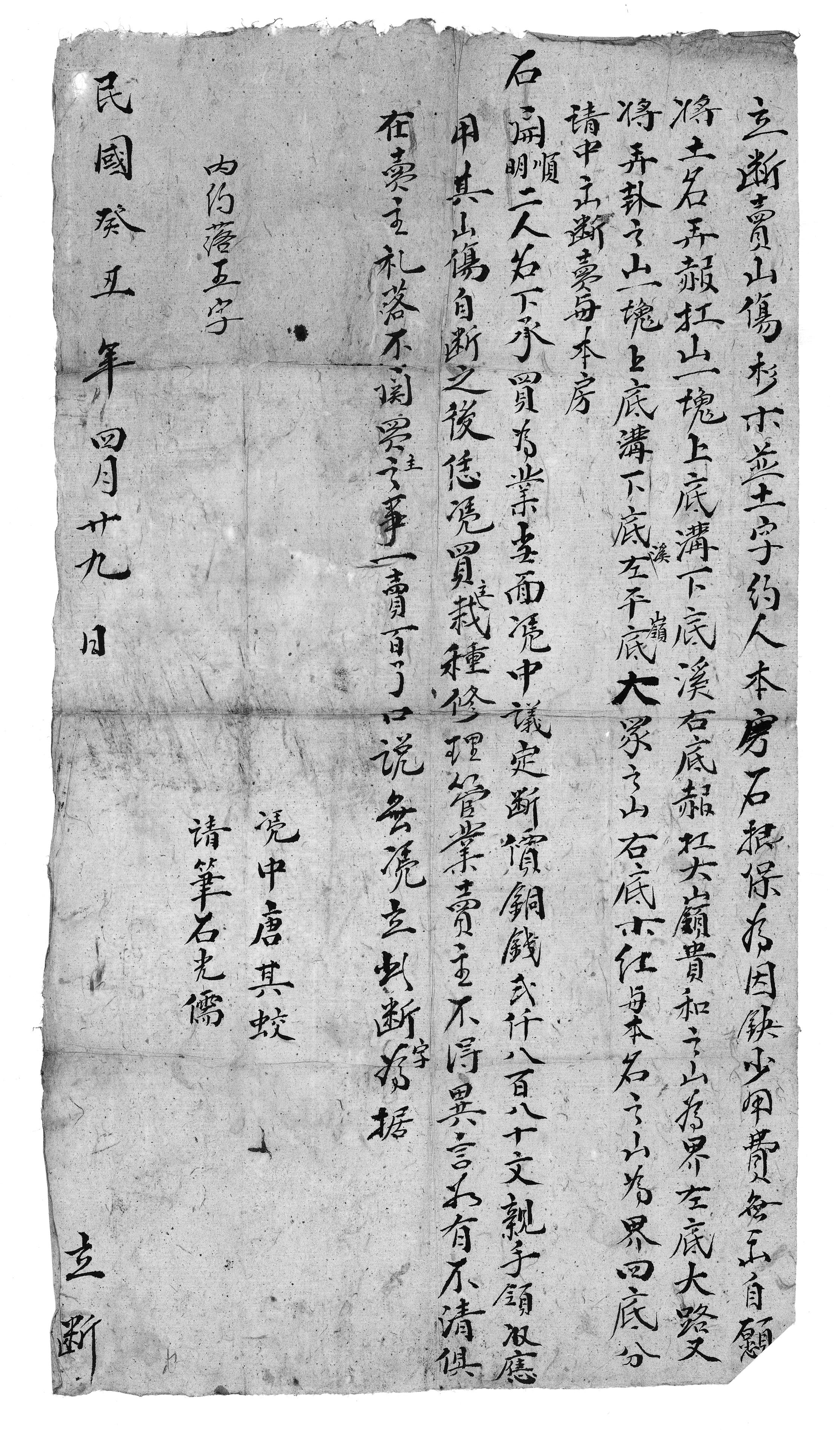 石逢濱斷賣杉山字約(民國十四年十月初四日) LP-76-16