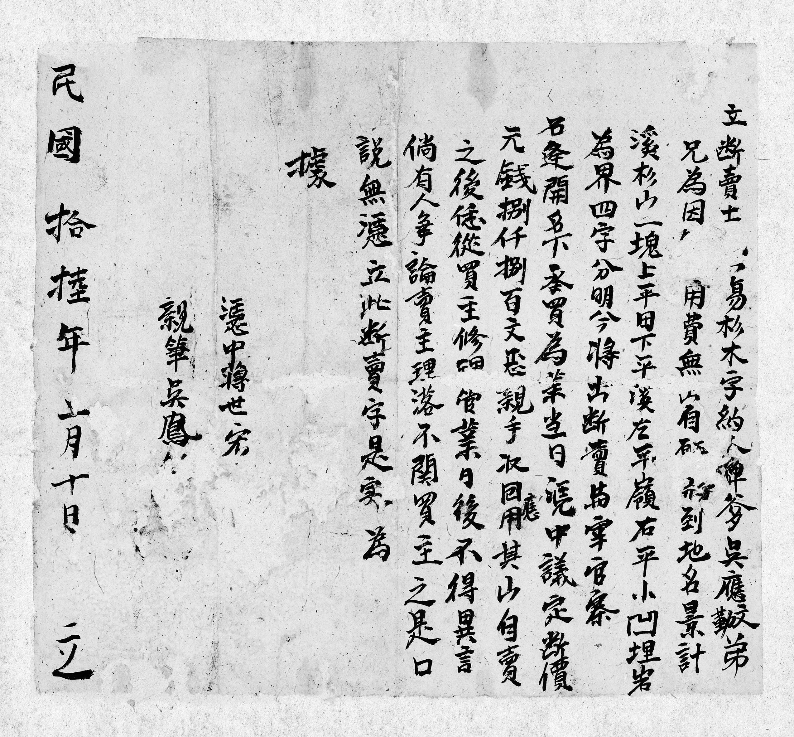 石維仕、石維政、石元興等斷賣山場杉木字約(民國十四年九月二十六日) LP-80-40