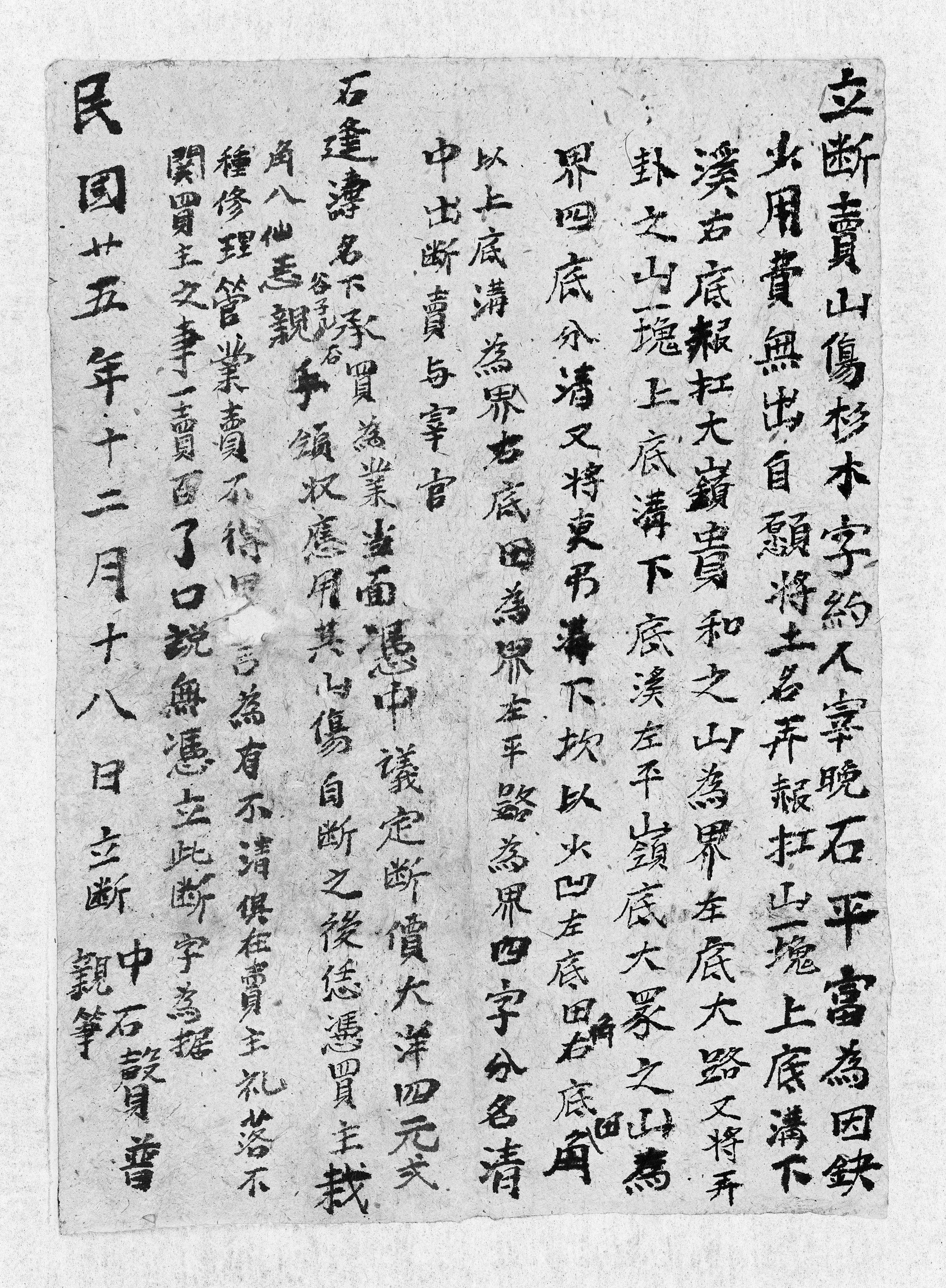 石逢濱斷賣杉山字約(民國十四年十月初四日) LP-76-16