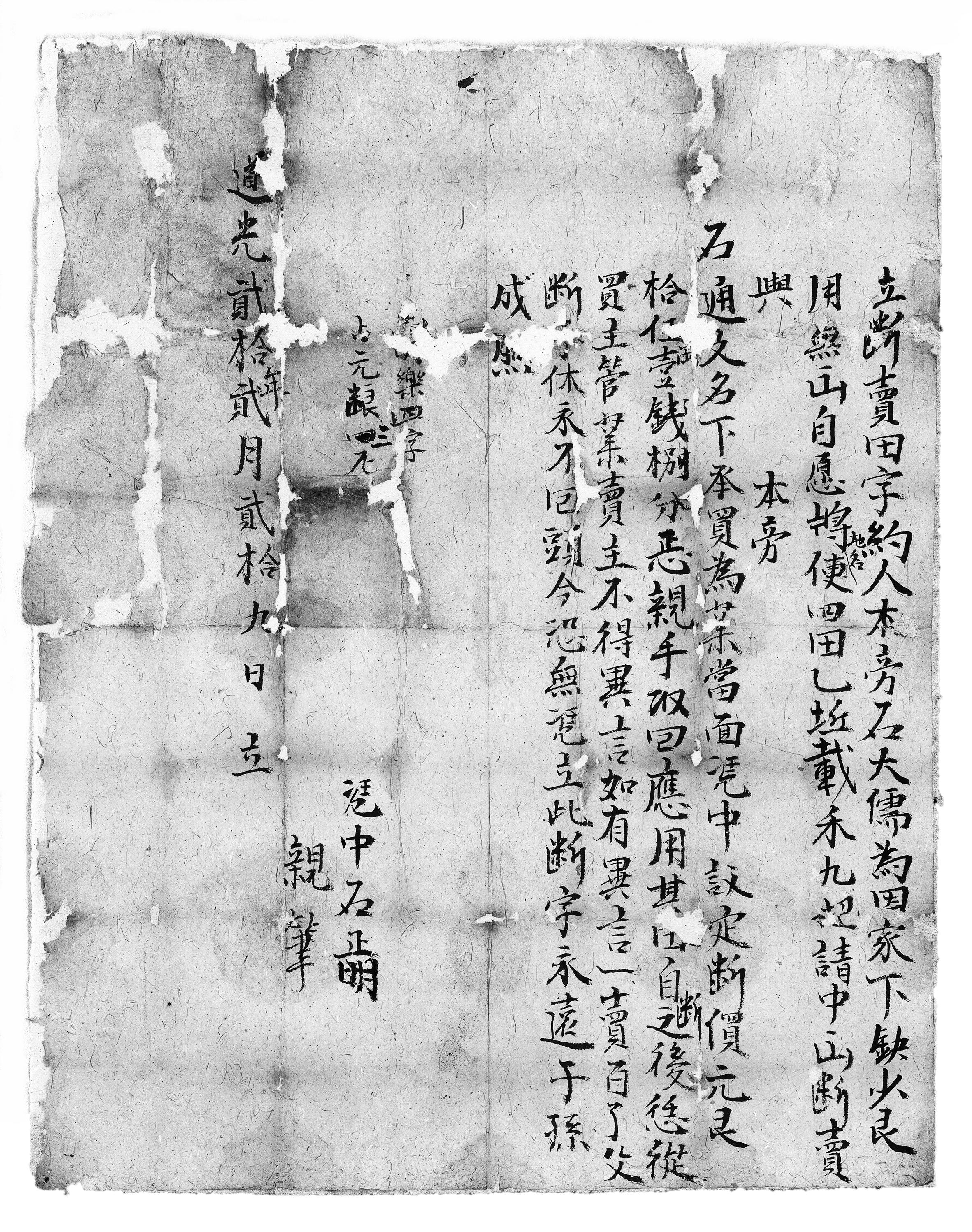 石光明斷賣田字約(光緒三年五月十六日) LP-120-31