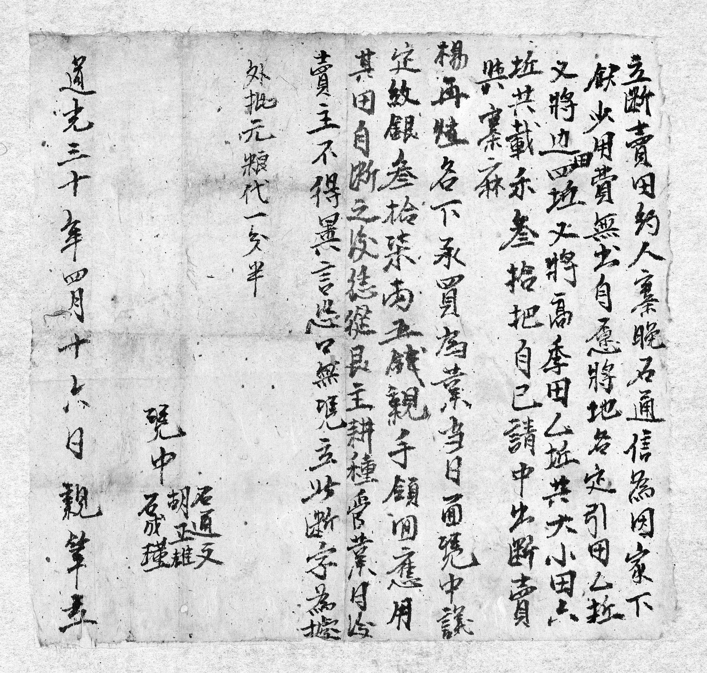 石含珉斷賣田字約(道光三十年正月十九日) LP-121-11
