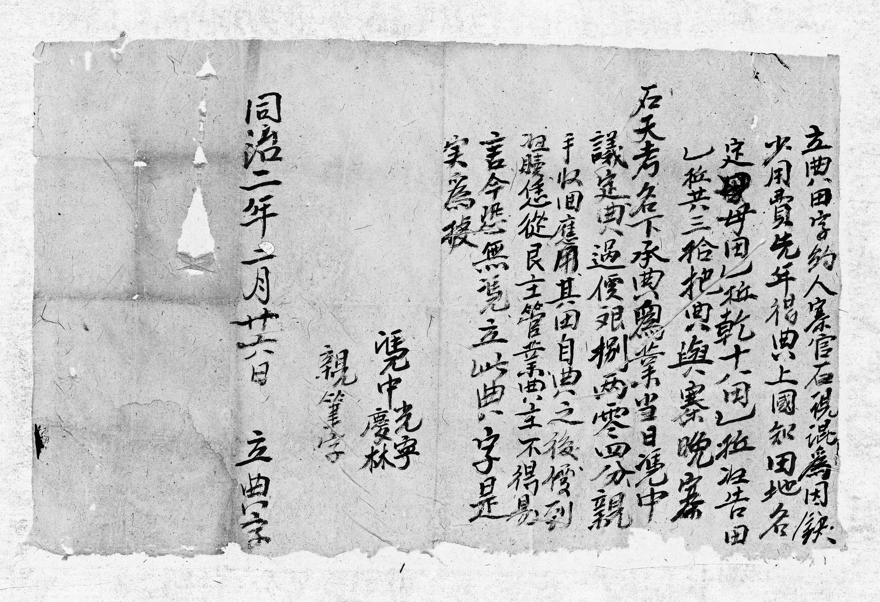 石氏乃出元斷賣田字約(同治十一年七月十七日) LP-121-17