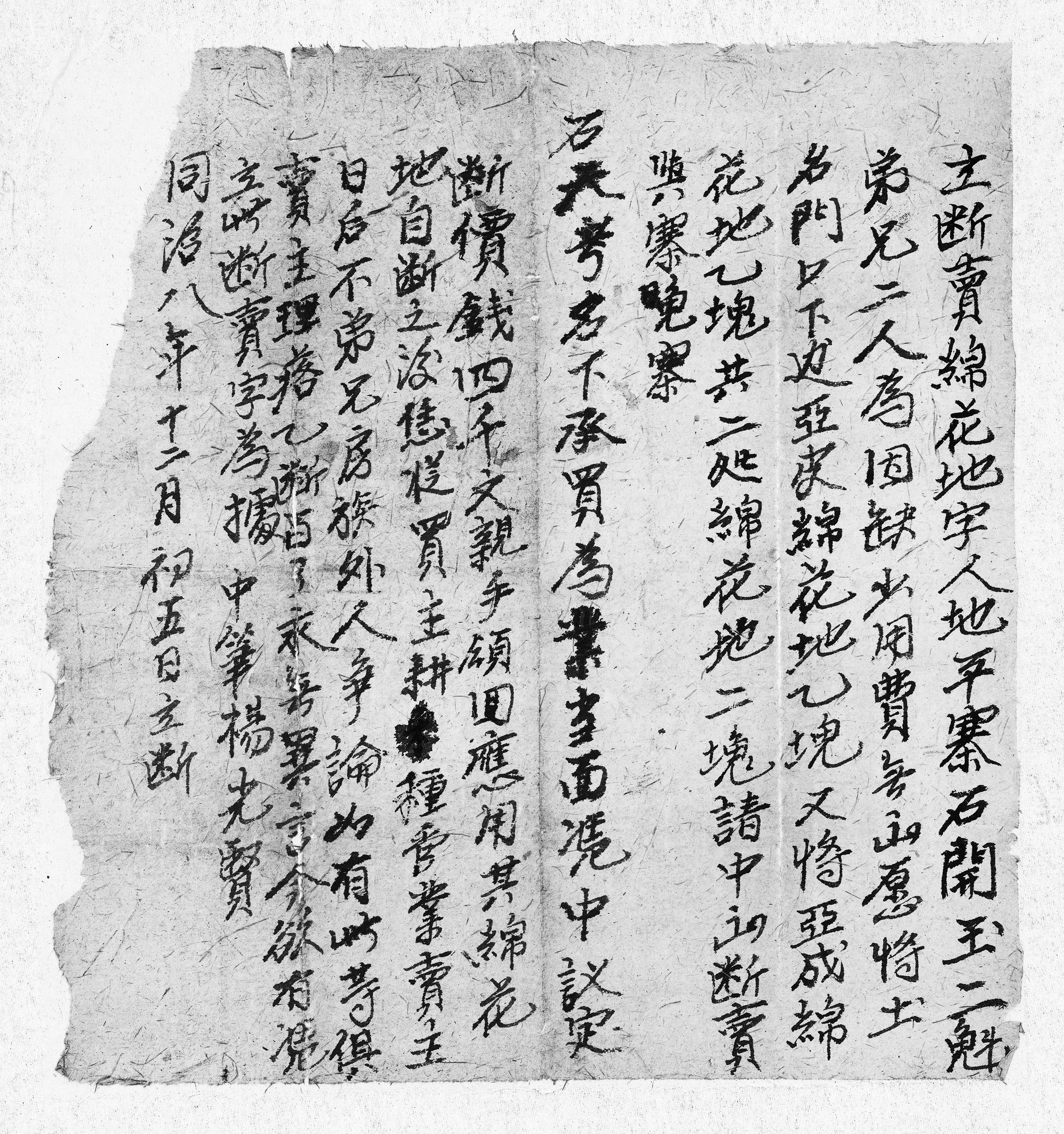 石非道斷賣棉花地字約(同治五年七月初八日) LP-120-10