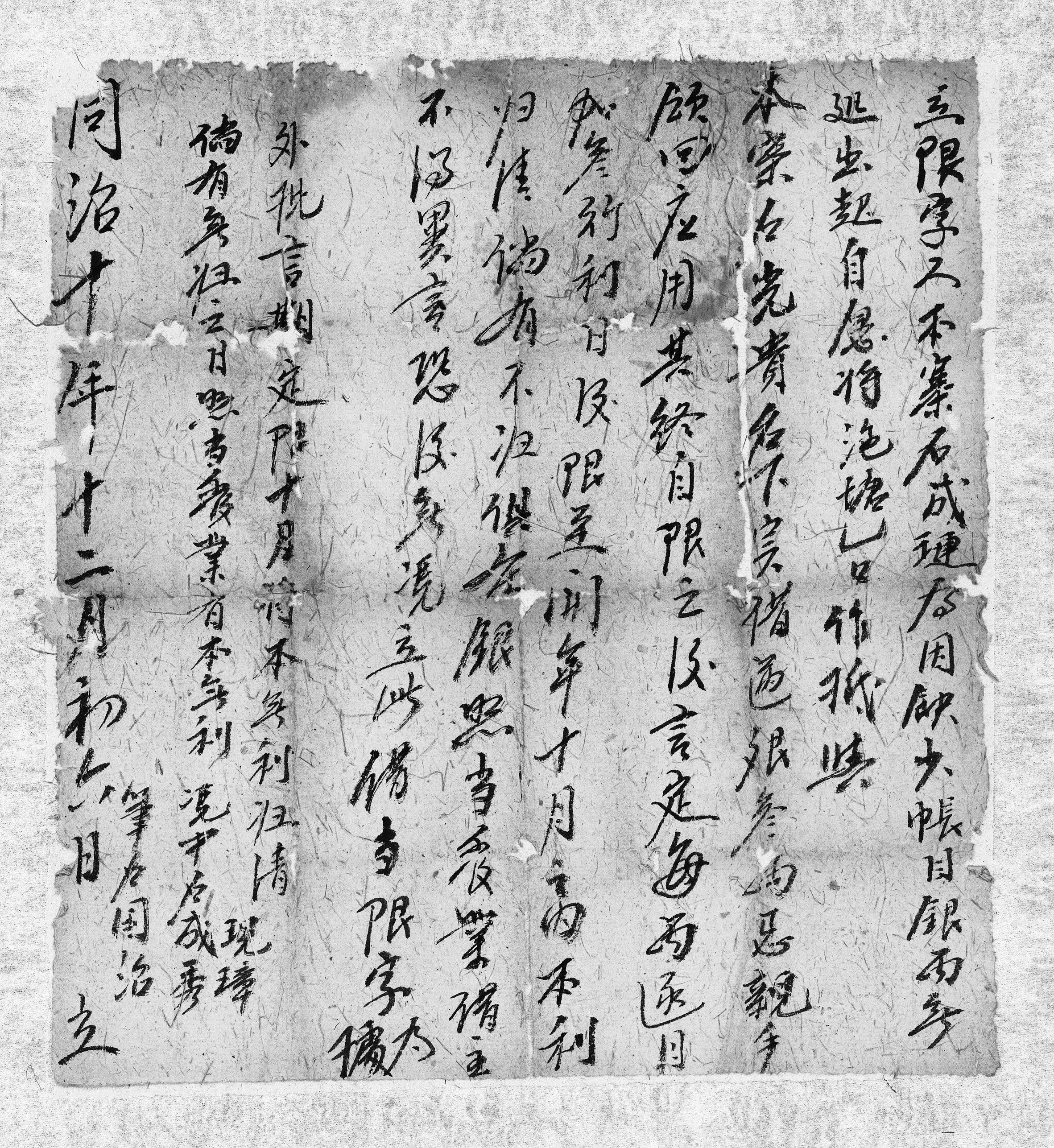 石含琳斷賣棉花地字(同治五年八月初三日) LP-120-12