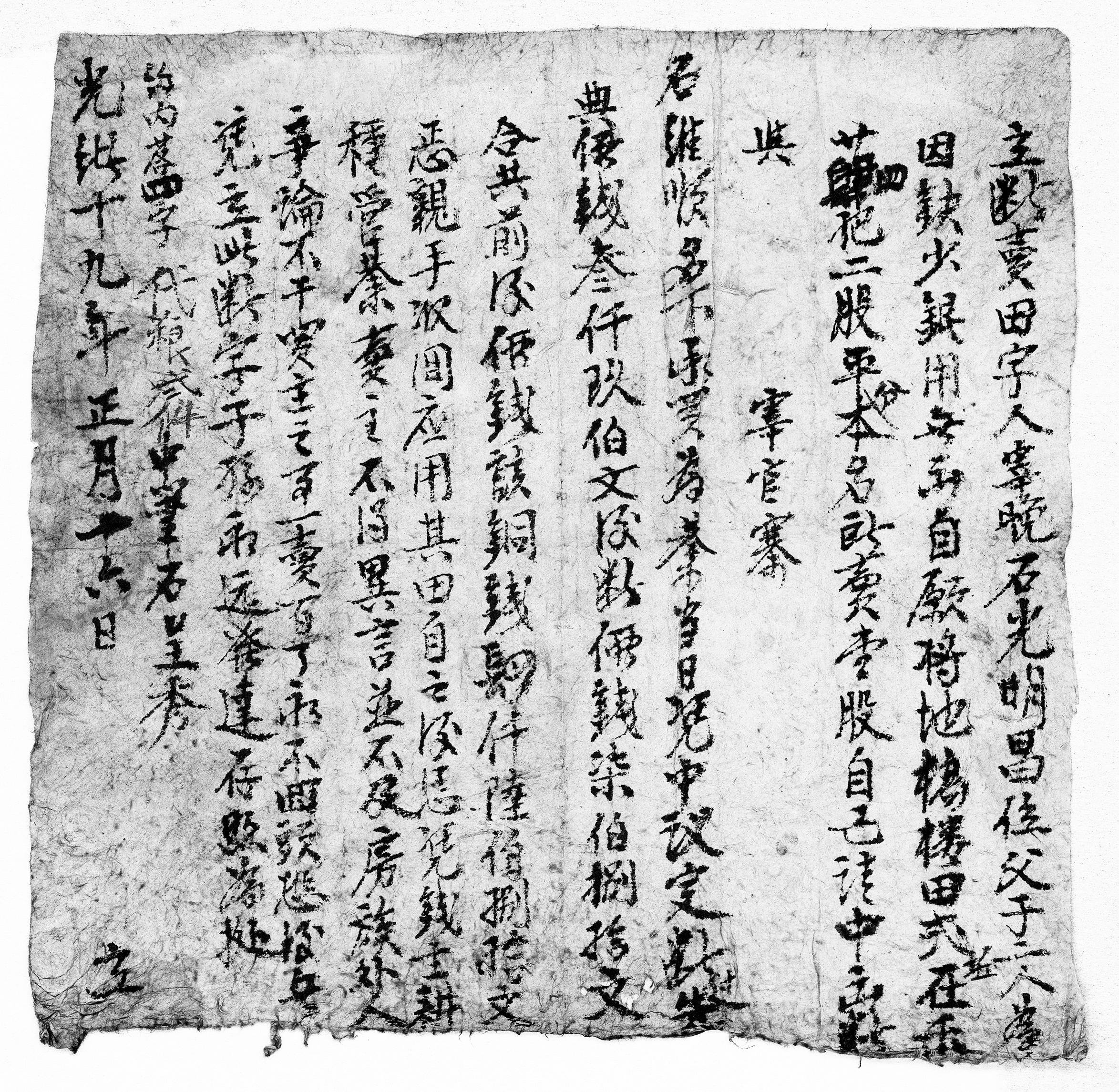 石燦然斷賣田字約(光緒十九年十二月二十七日) LP-76-1