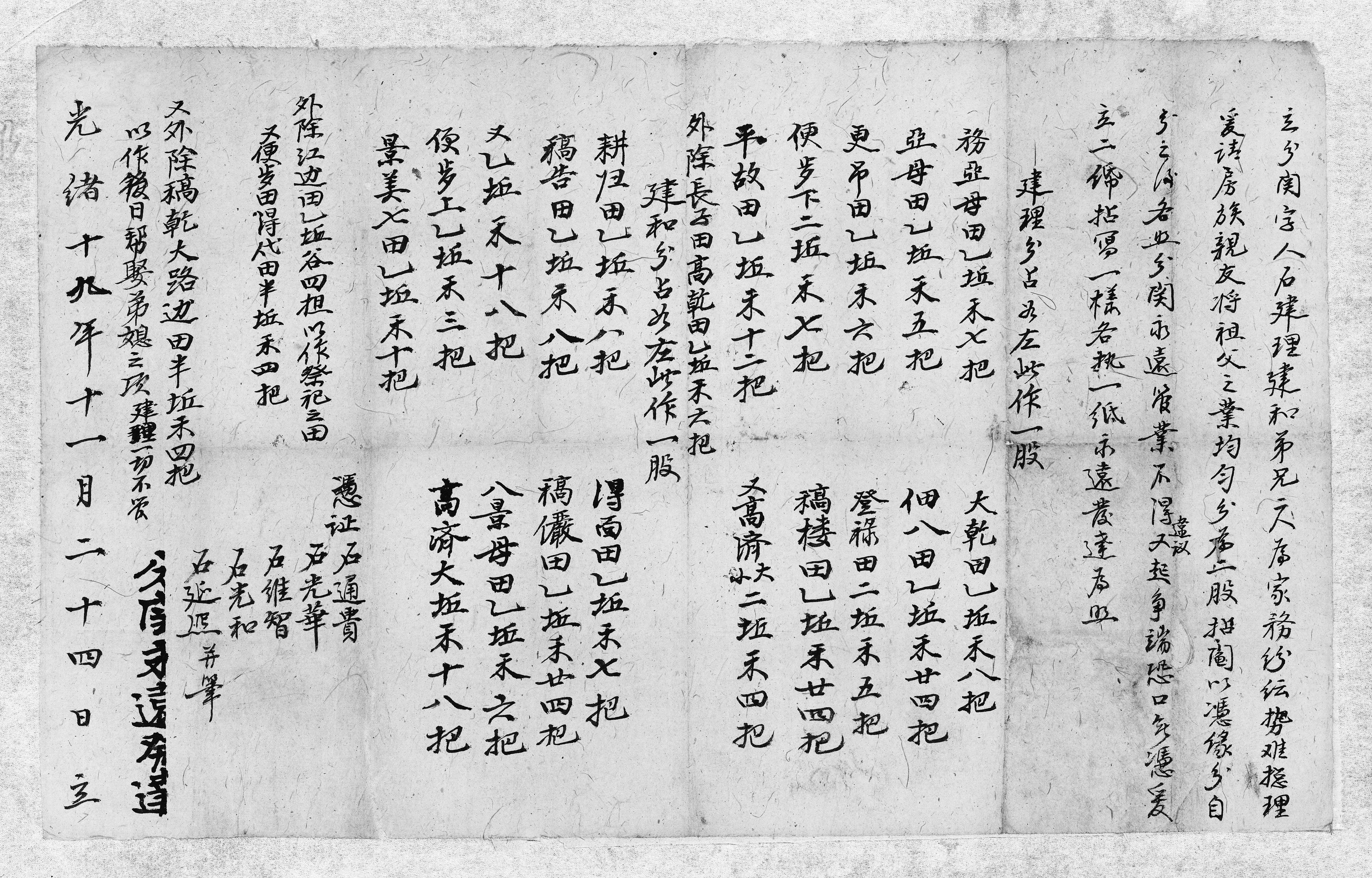 石燦然斷賣田字約(光緒十九年十二月二十七日) LP-76-1