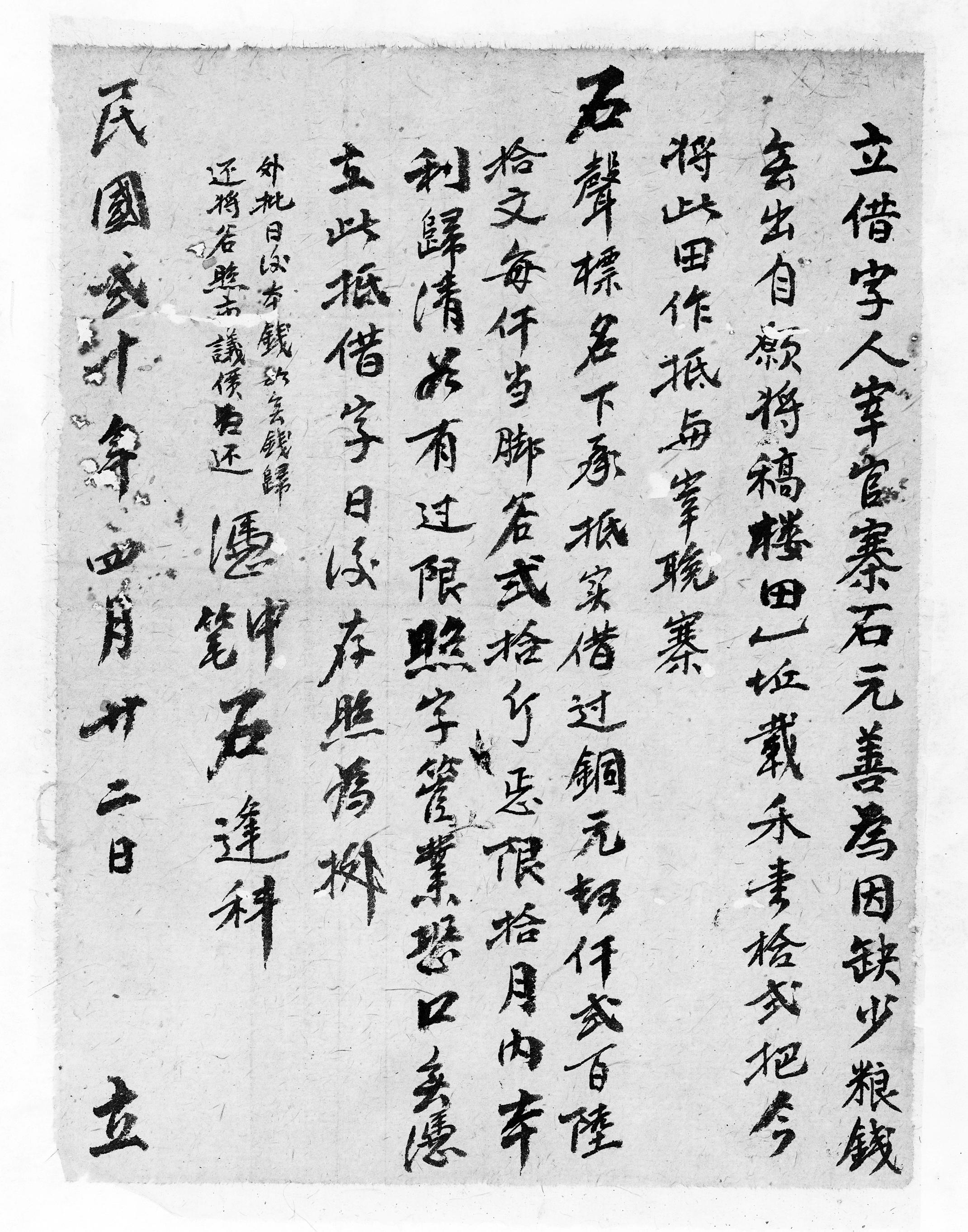 石氏娘求歲、石連邦母子二人斷賣田字約(民國五年正月二十八日) LP-76-14