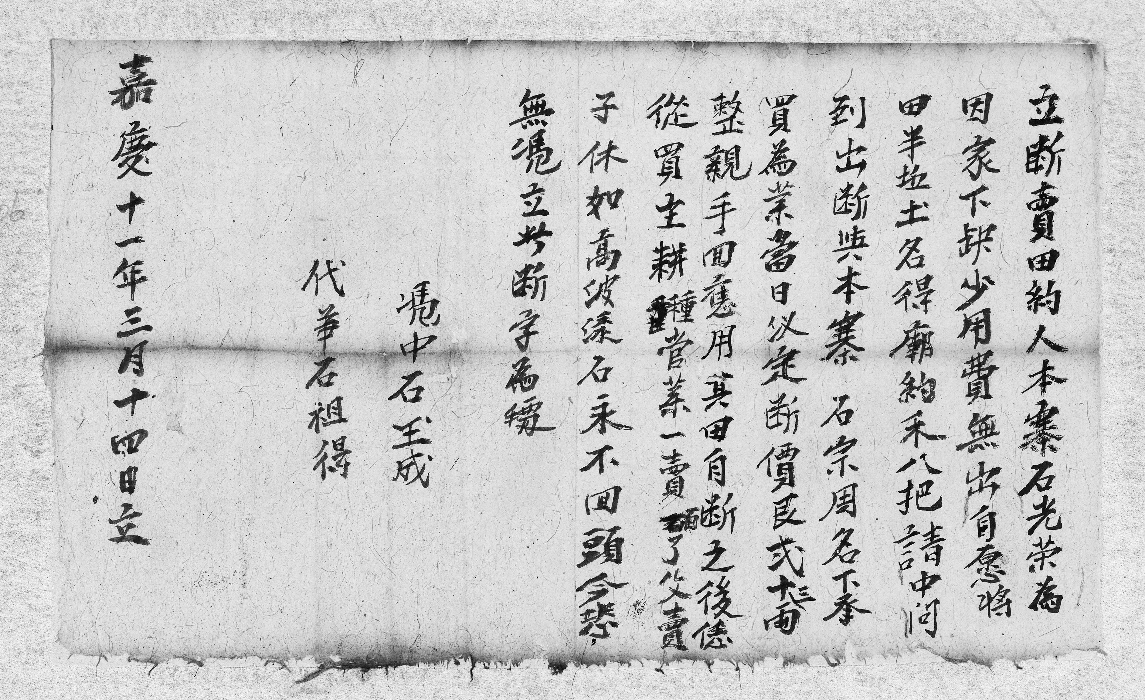 石永霞、石舞粦二人斷賣田字約(咸豐十年十一月初二日) LP-121-15