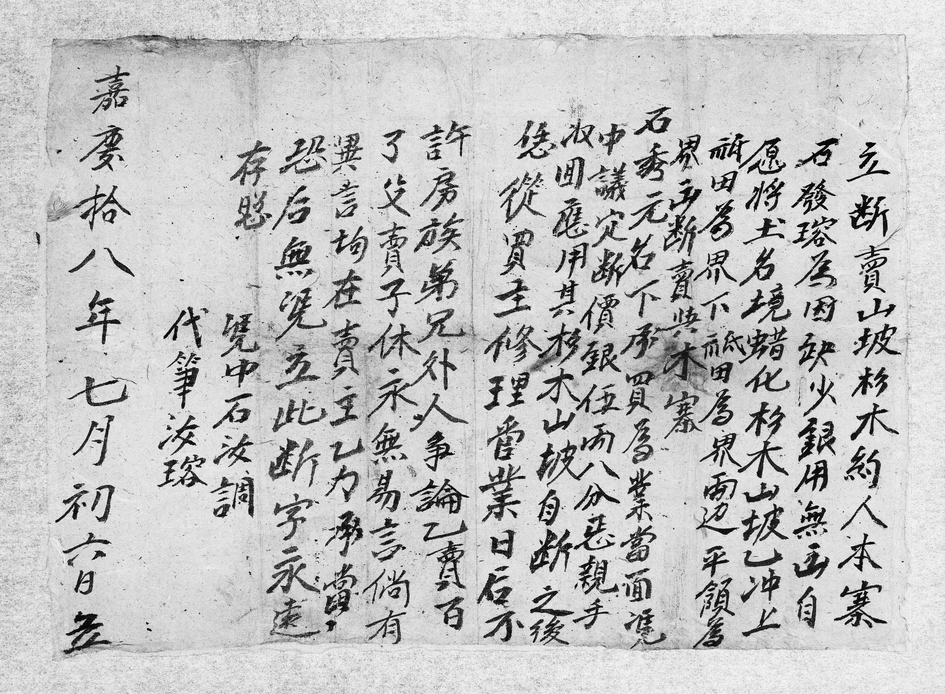 石氏前新、石双盛母子斷山場杉樹柚地約(嘉慶十七年六月十五日) LP-120-2