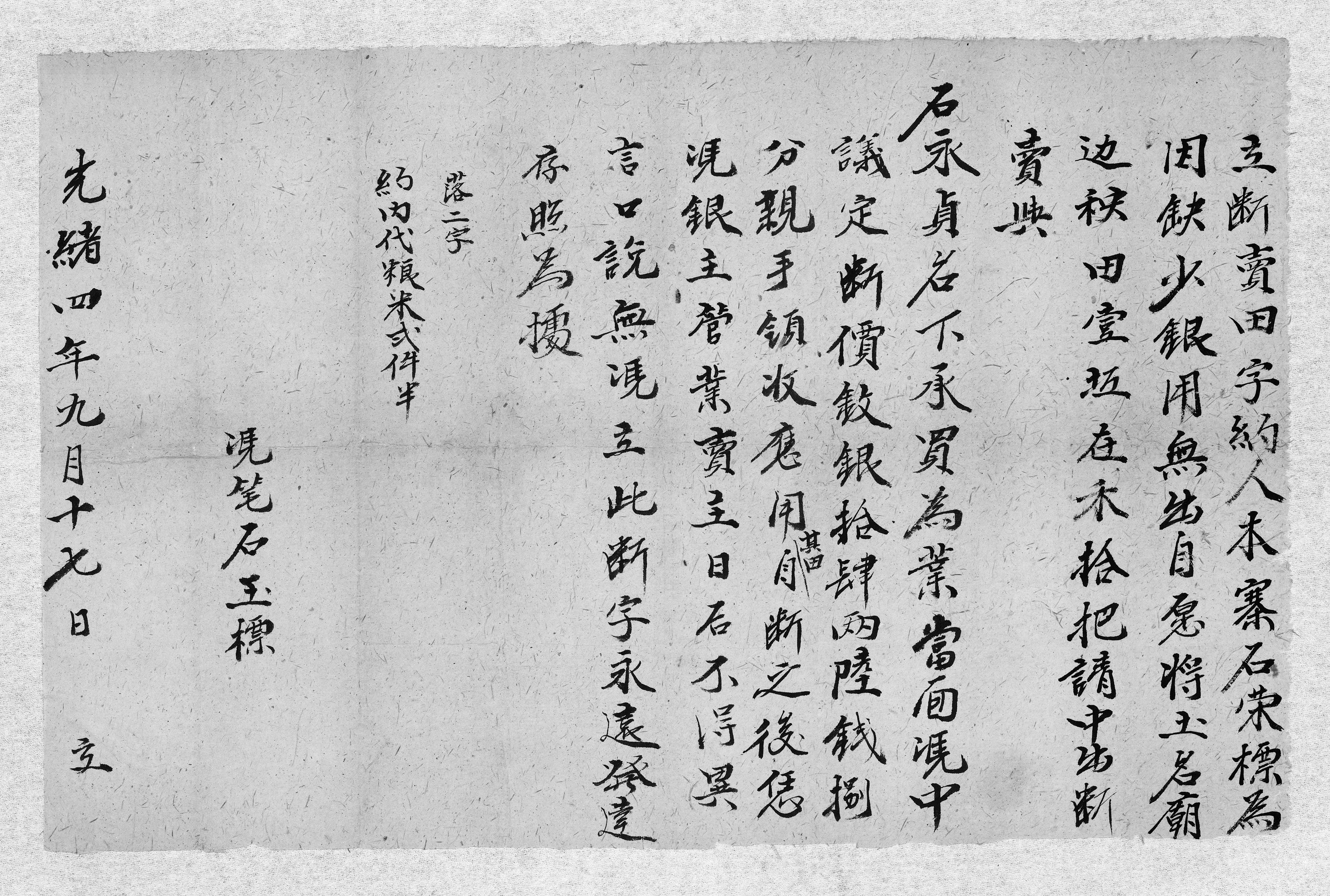 石光明斷賣田字約(光緒三年五月十六日) LP-120-31