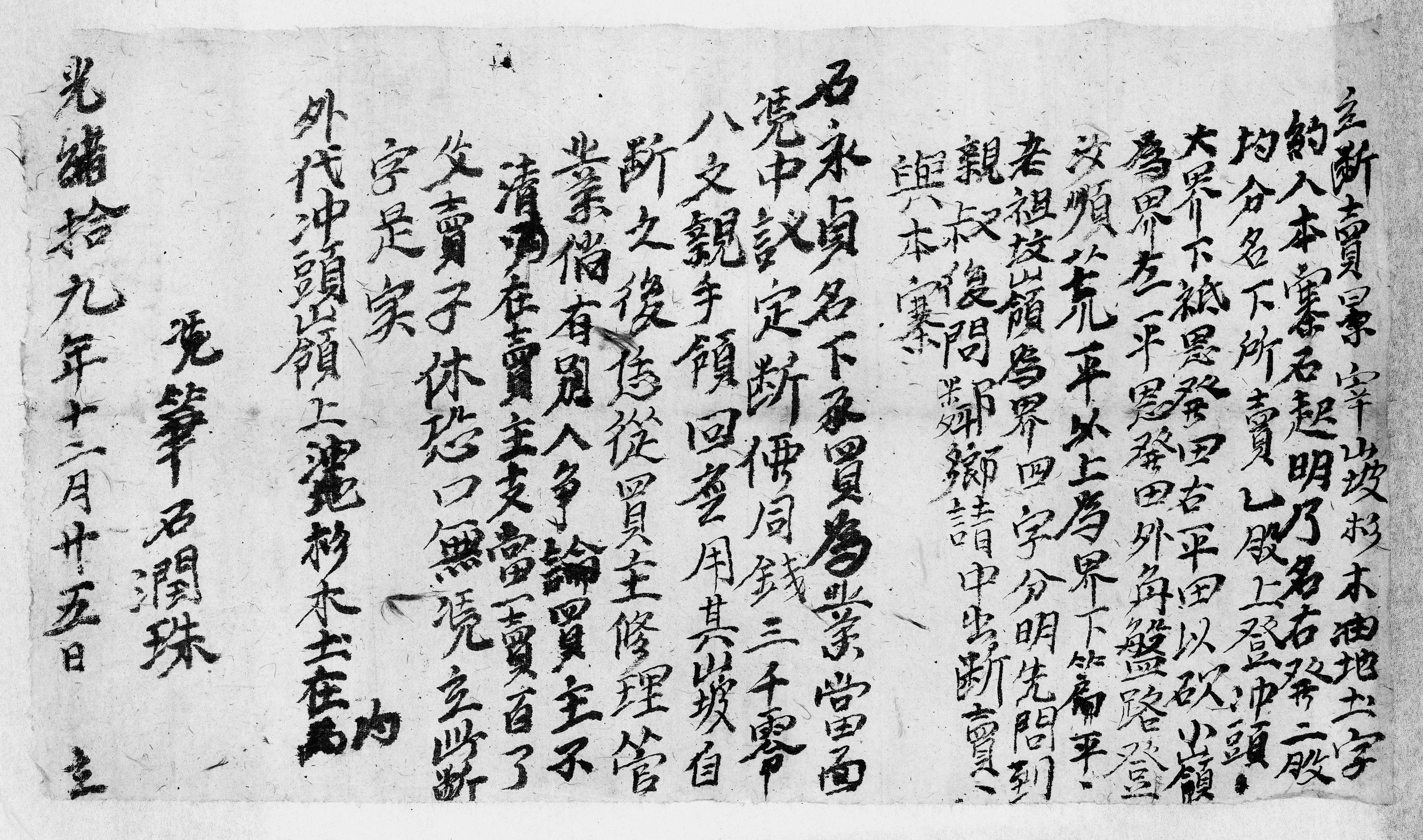 石燦然斷賣田字約(光緒十九年十二月二十七日) LP-76-1