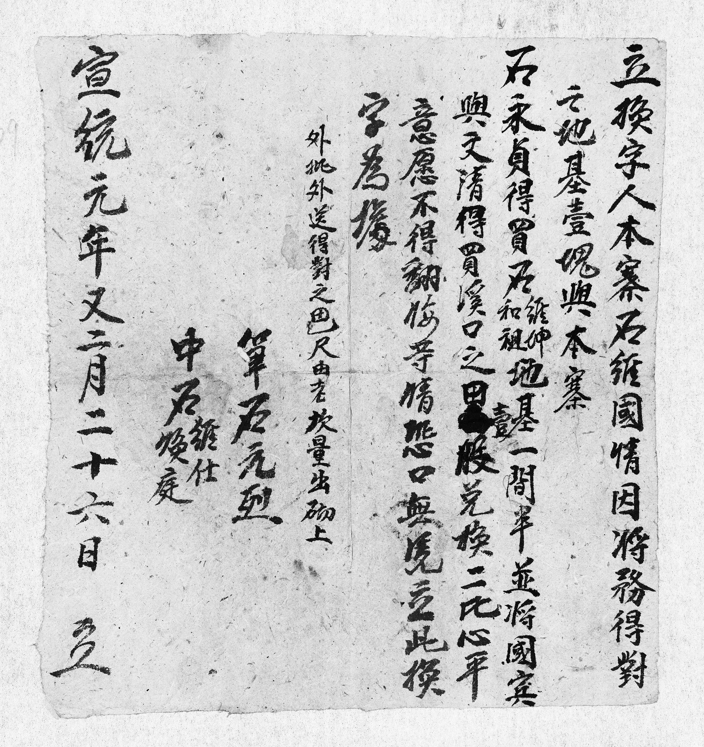 石德粹斷賣田字(光緒三十四年三月十三日) LP-120-67