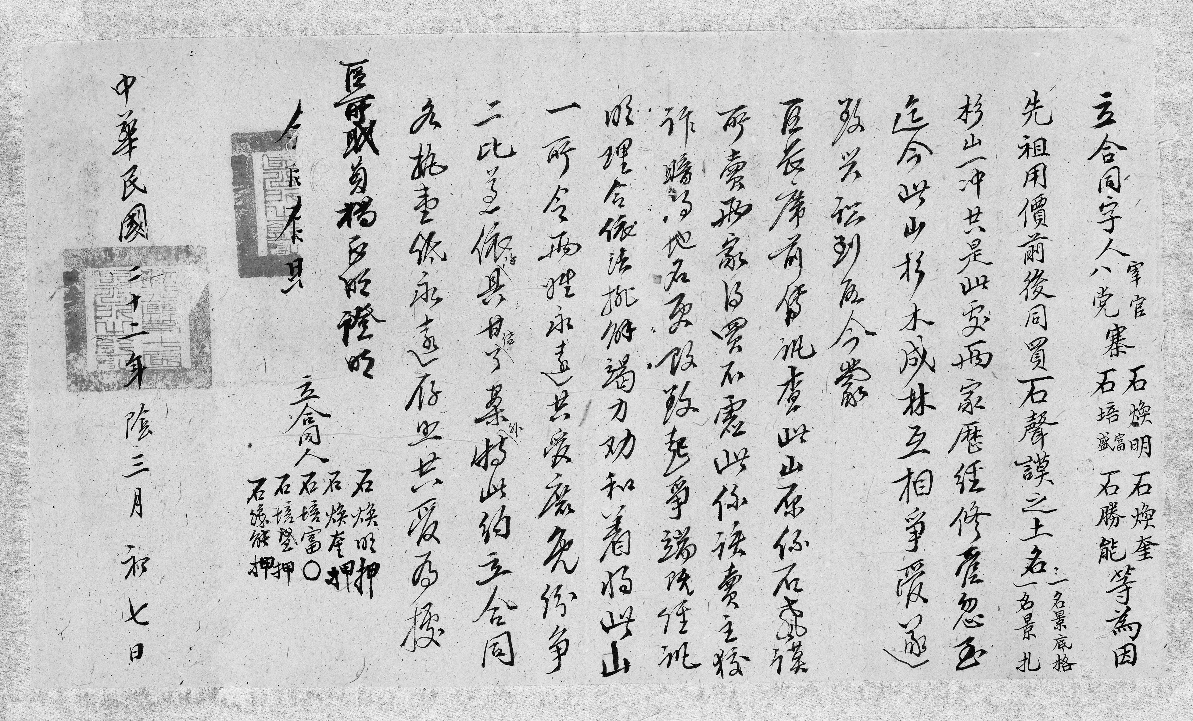 石焕明、石培富、石培盛等合同字(民國二十二年三月初七日) LP-80-43