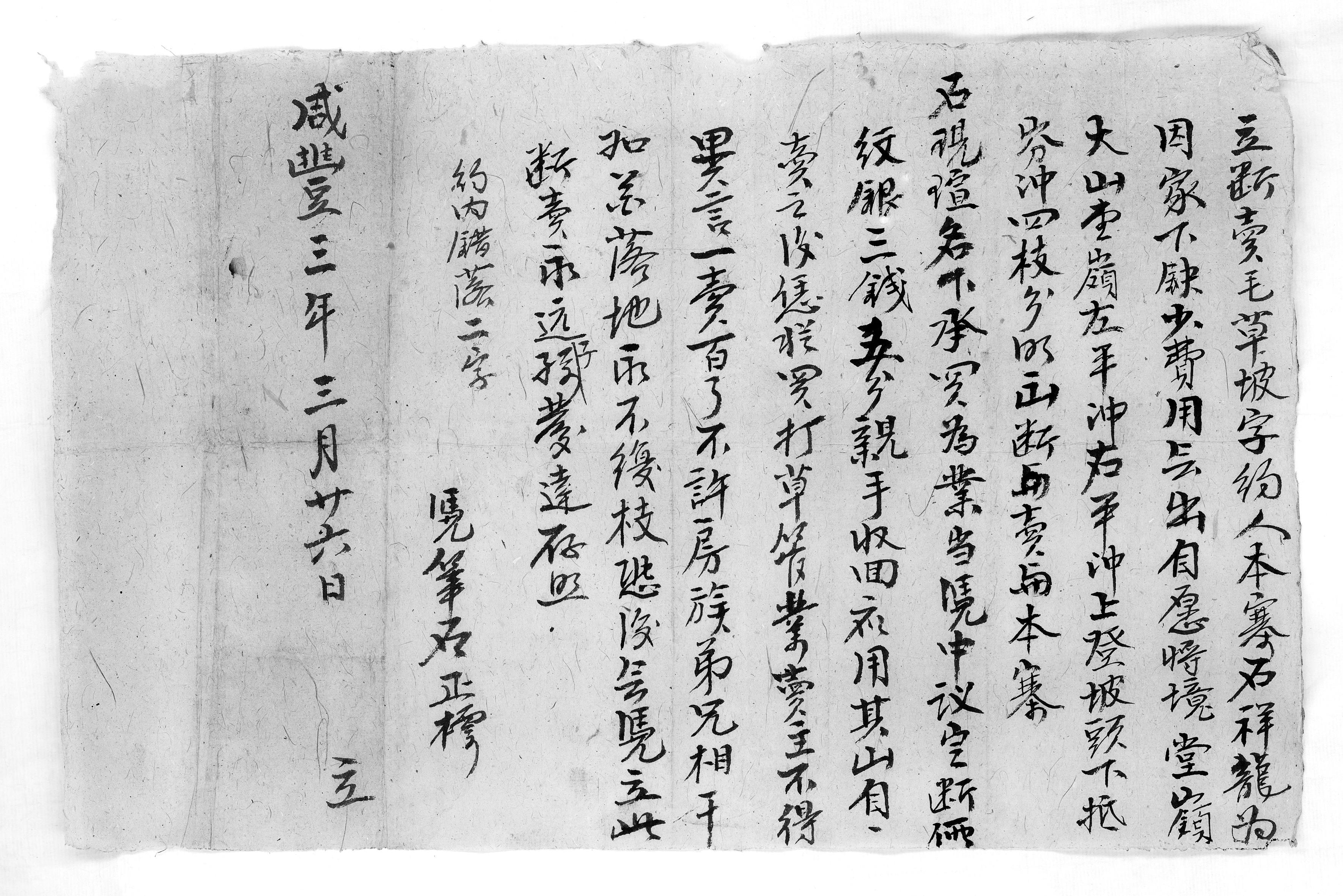 石祥龍斷賣茅草山字(咸豐三年三月初八日) LP-121-13