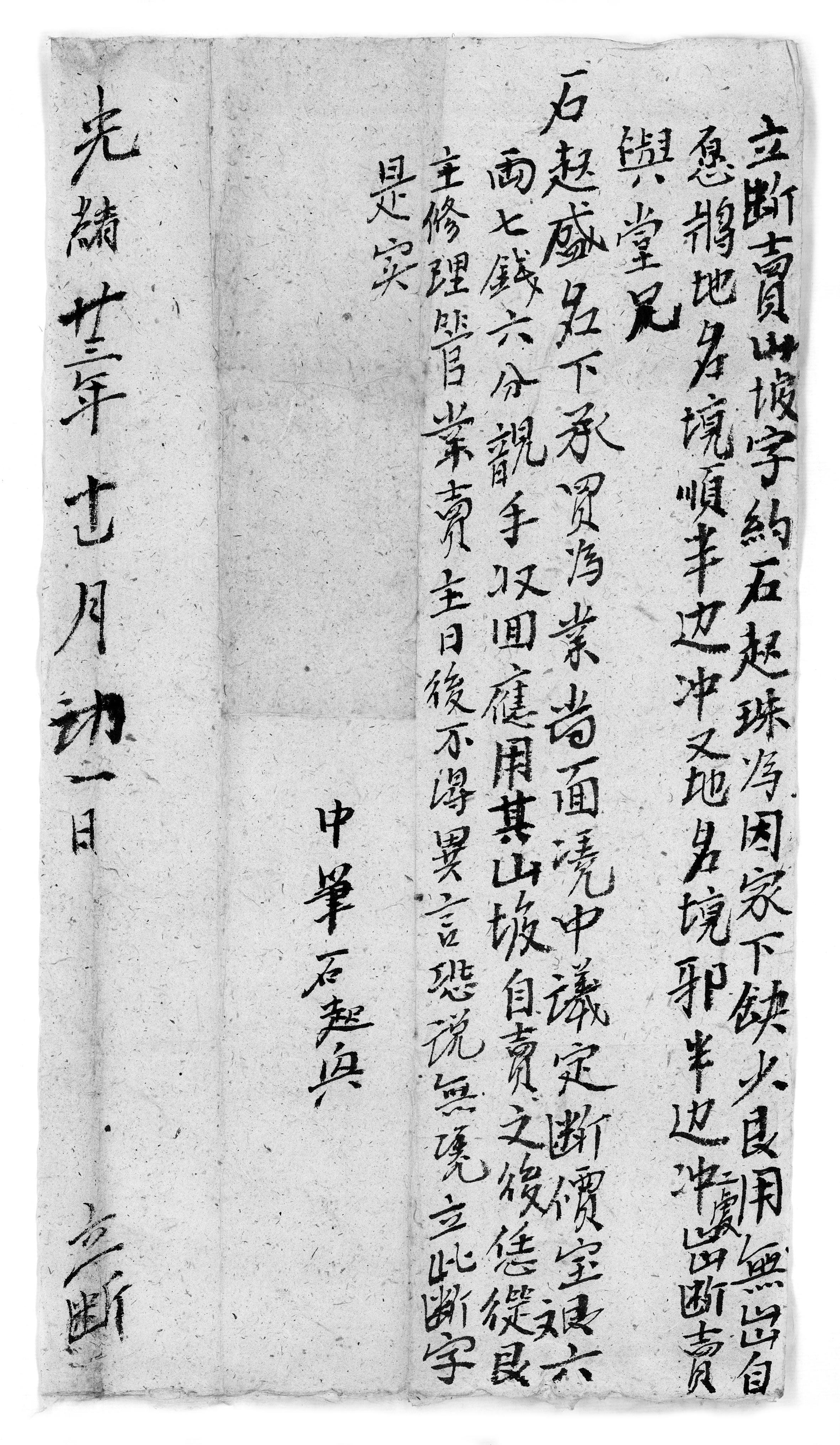 石光明斷賣棉花地約(同治六年四月十三日) LP-120-14