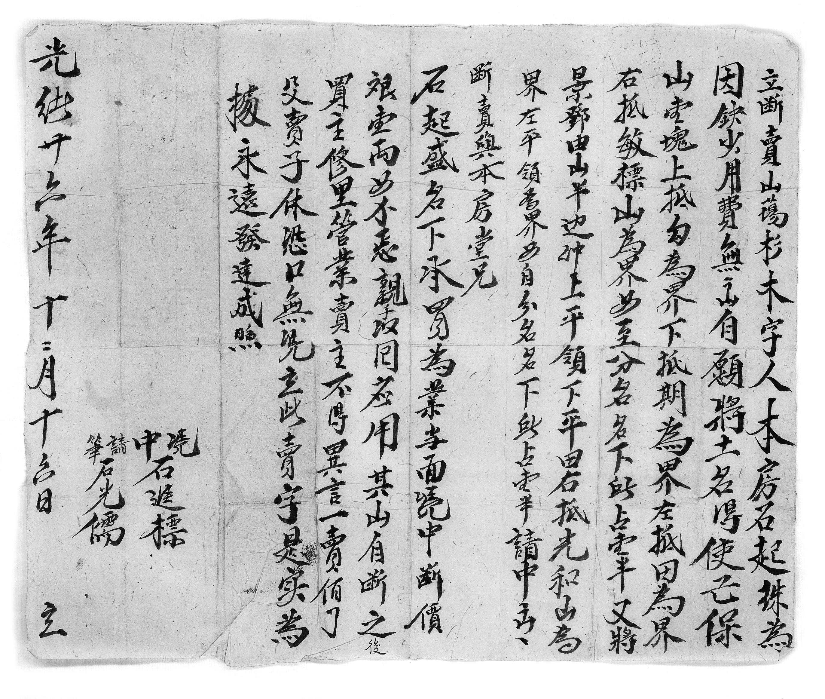 姜文顯父子三人斷賣山場杉木字約(道光三十年十月十五日) LP-120-3