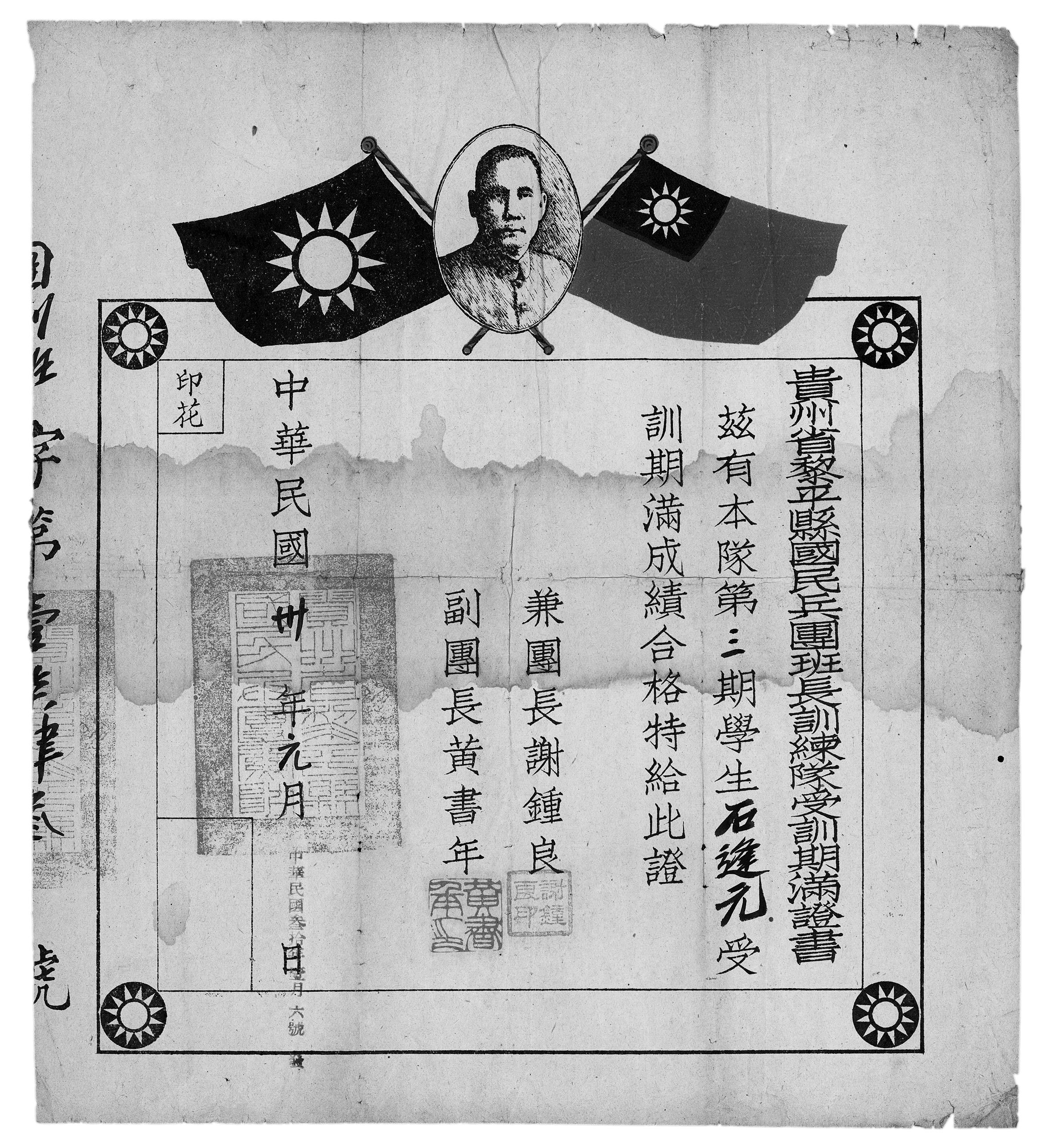 石逢元貴州省黎平縣國民兵團班長訓練隊受訓期滿證書(民國三十年元月) LP-121-38