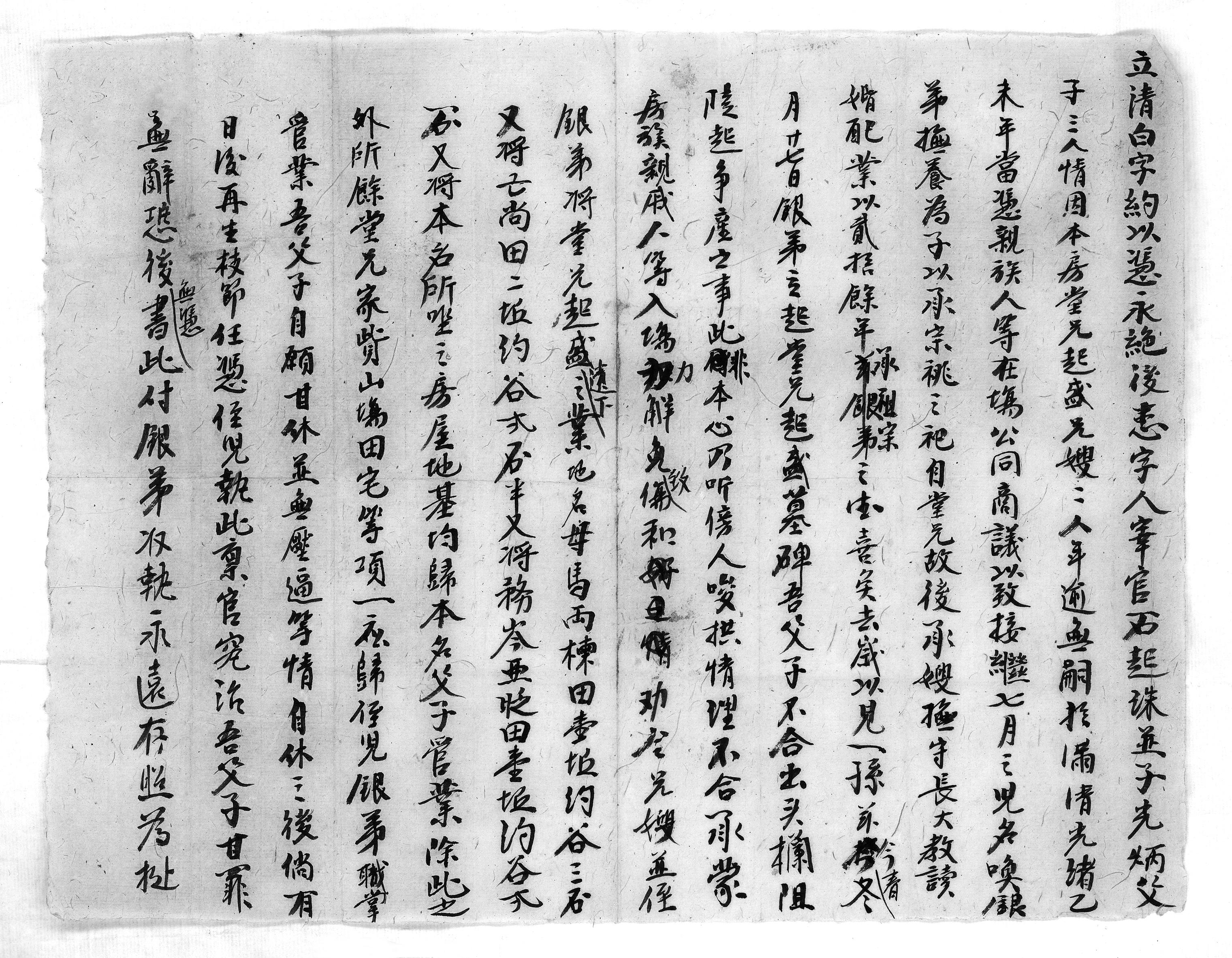 石争茂弟兄二人斷賣田約(同治五年八月初一日) LP-120-11