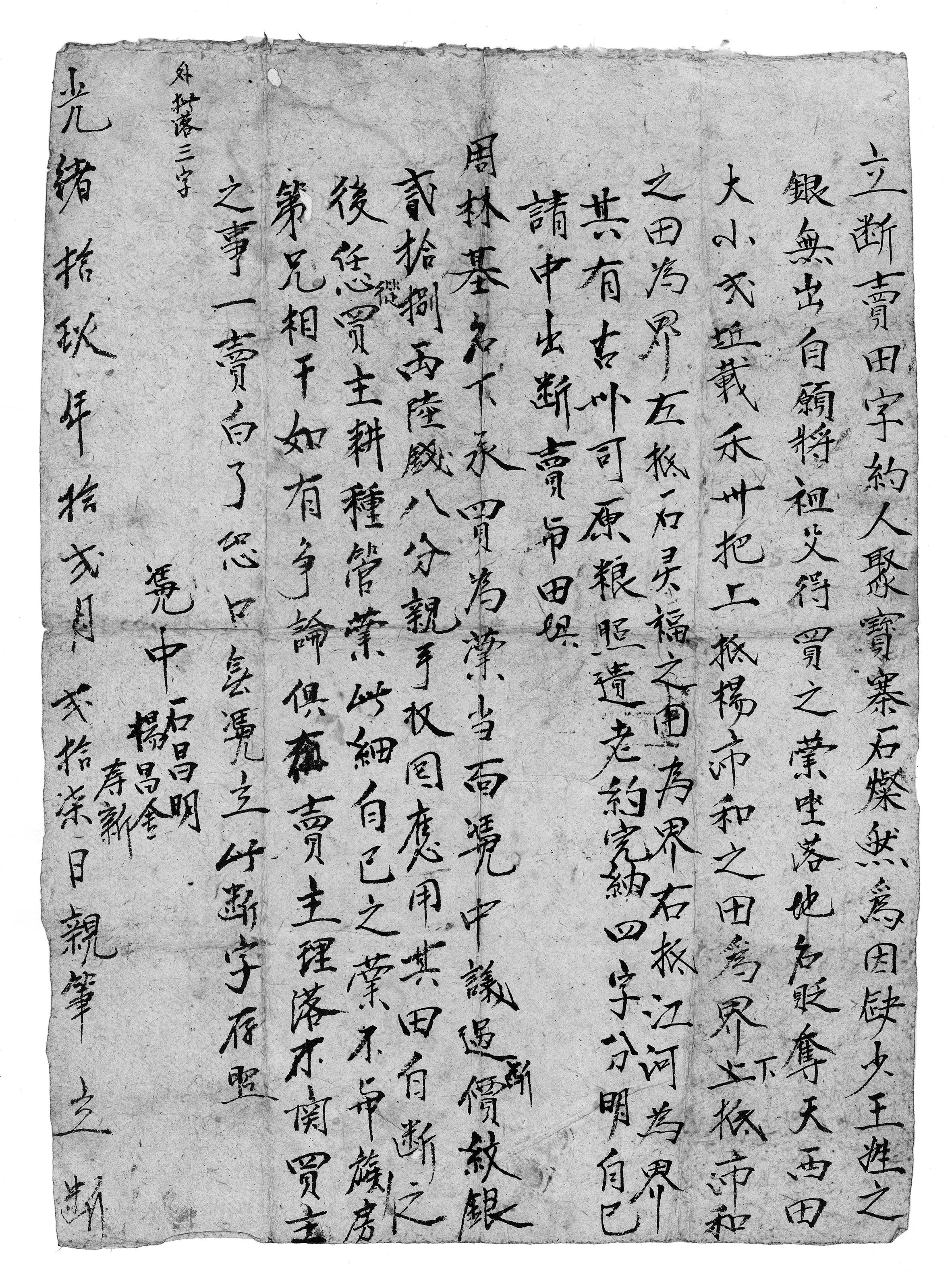 石光明斷賣田字約(光緒三年五月十六日) LP-120-31