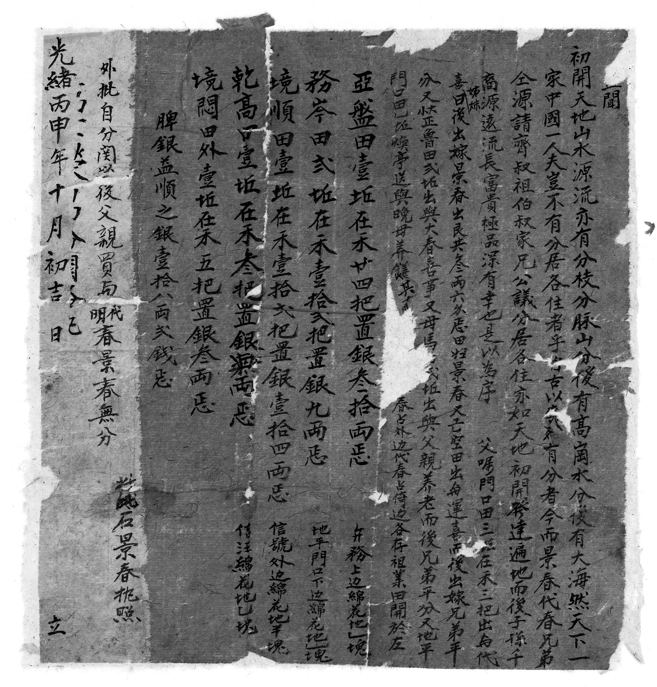 石景春、石代春兄弟分關字(光緒二十二年十月□日) LP-76-2