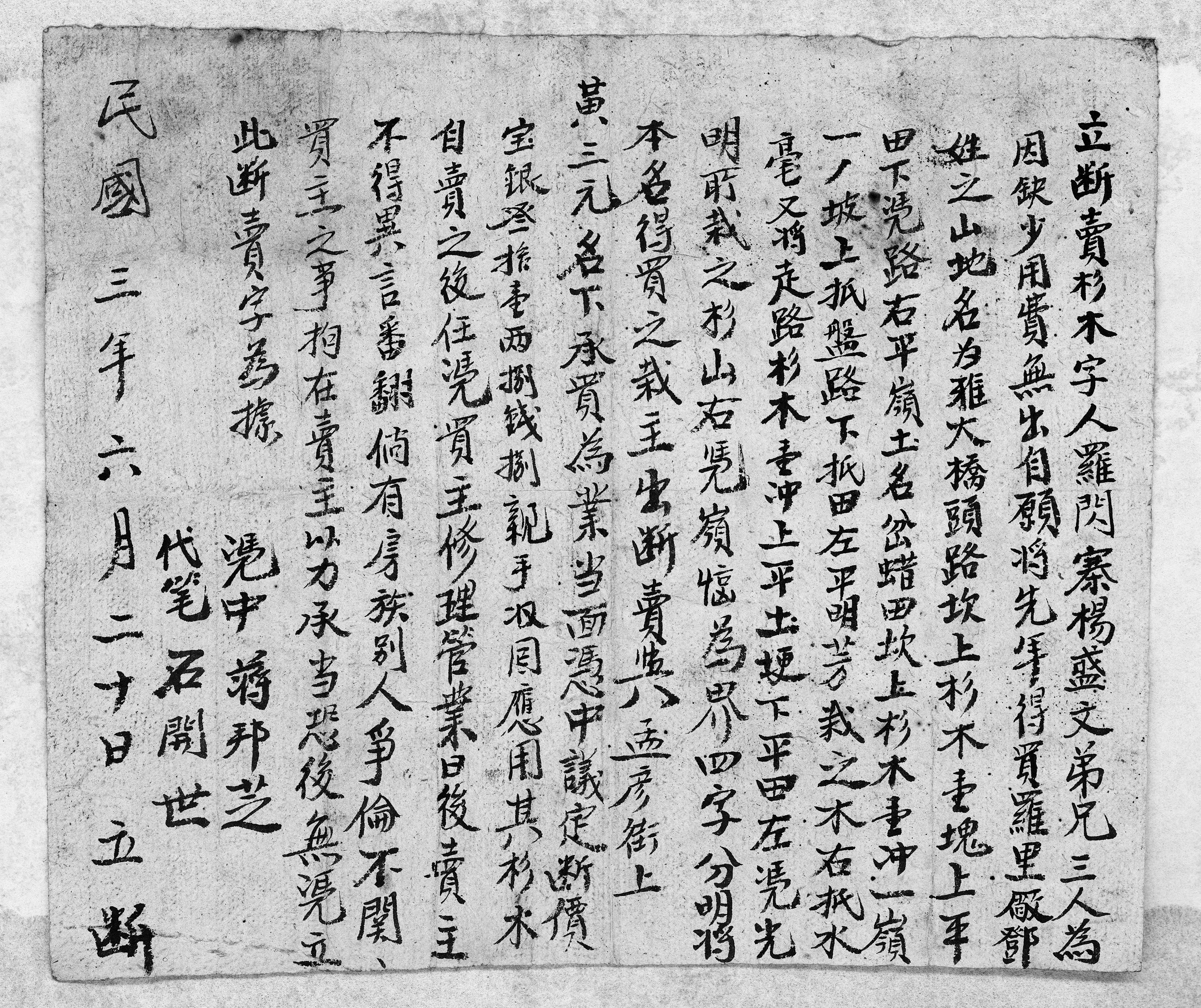 楊盛文弟兄三人斷賣杉木字(民國三年六月二十日) LP-76-13