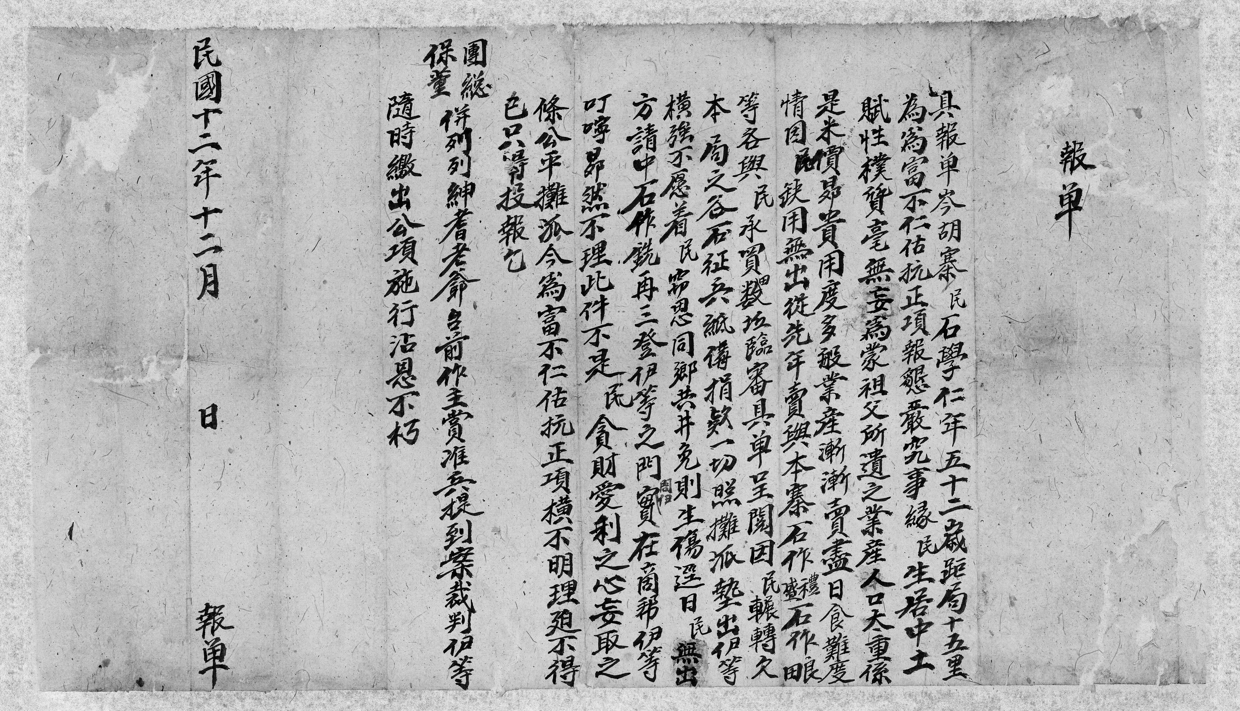 石學仁報單(民國十二年十二月) LP-76-21