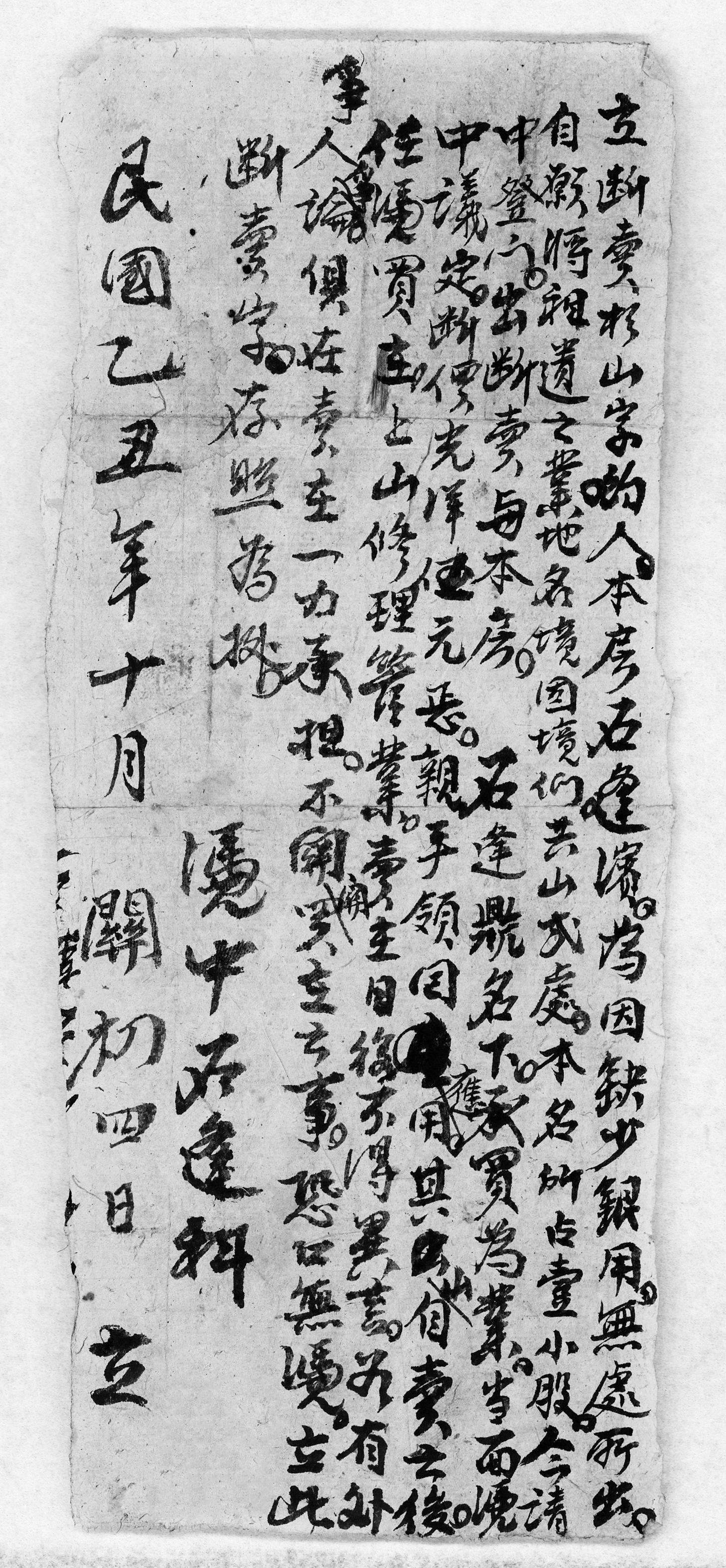 石逢濱斷賣杉山字約(民國十四年十月初四日) LP-76-16