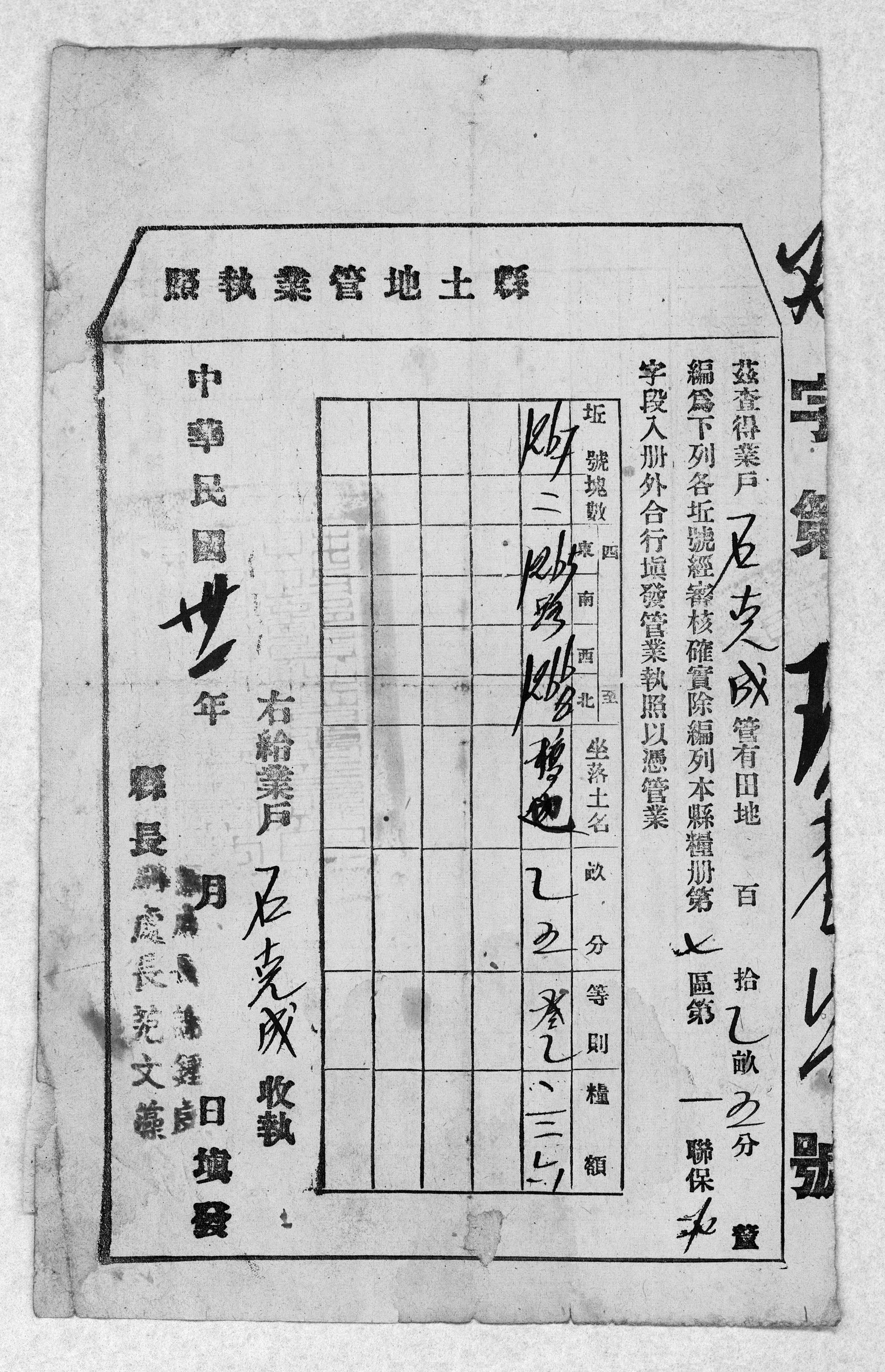 石樹和斷賣田字(民國三十二年十二月二十七日) LP-80-46