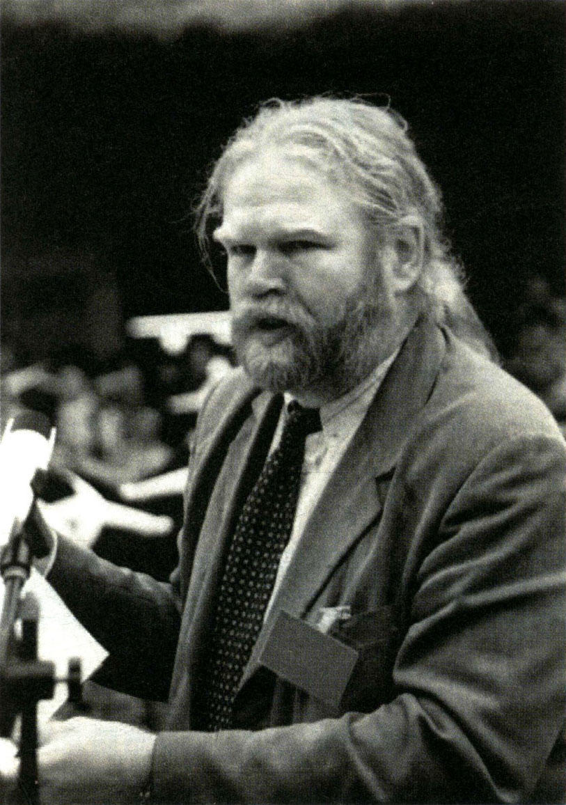 由于身躯高大,约翰·杰斯特龙先生在队伍中简直是“鹤立鸡群”。他这次来和1995年4月那次来,只在装扮上略有区别,那一头金黄色的头发再也不是披在后面,而是用胶圈将头发扎成了“小刷把”,留着的大胡子好像比三年前长了些,还是穿那件米黄色的风衣,内里穿了一件大花格子衬衣,打一条红色的领带,走起路来很精神,脸上挂着笑容。约翰·杰斯特龙先生眼睛看向站在高土坎上的那些穿着盛装的村民,村民们向他欢呼,不停地在叫“约翰——约翰——”,他激动不已,频频向村民招手。