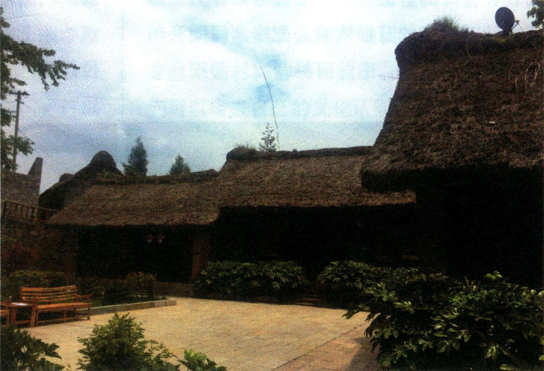资料信息中心的三组建筑都是坐东面西,分布在三条东西向的平行轴线上,呈阶梯状分布。每栋建筑的平面布局与寨里上百年的民居相同,所不同的是用材和屋面的处理。用材方面是石、木、砖同时并用,但建筑主体仍为穿斗式木结构。第一组和第二组建筑为石墙围护,但石墙不承重,只起到避风雨的作用;第三组建筑为砖木结构,砖墙为承重墙,墙的外壁刷黄泥浆,做成仿土墙体。屋面虽是草顶,但增加了一层“望板”,在“望板”上面涂沥青,然后再盖草。这种屋面杜绝了漏雨和耗子打洞,所以也应用到了对百年民居的抢险加固中,深受村民的好评。