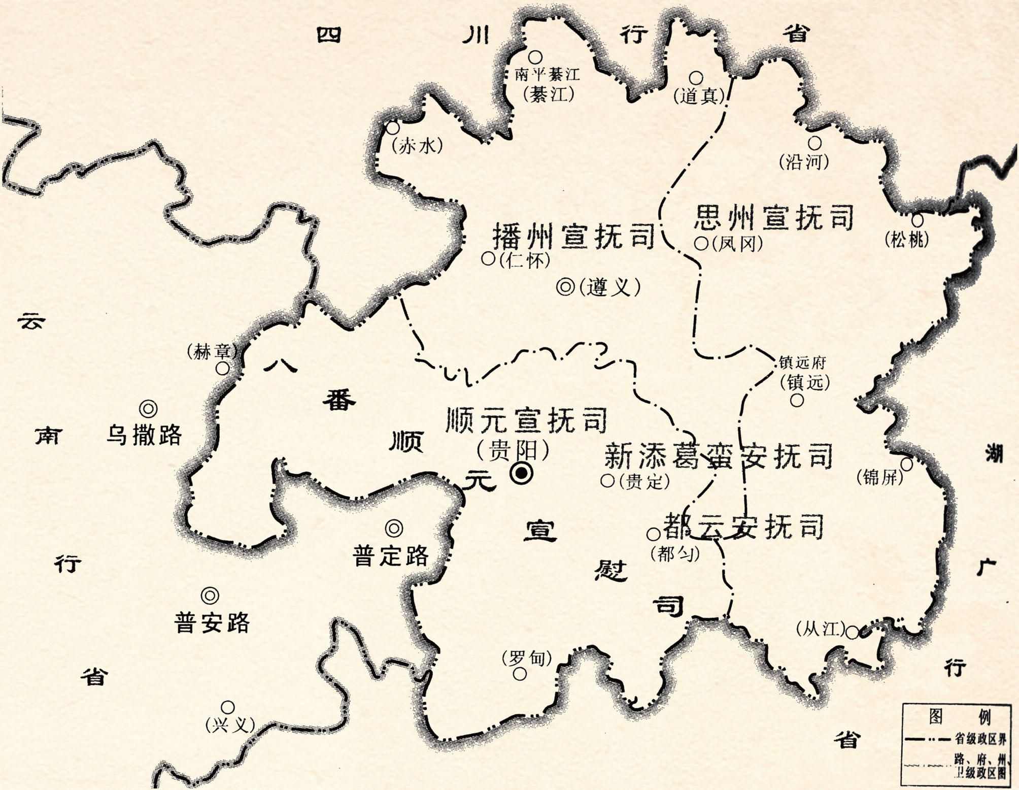 (注: 元代三省结合部的贵州地图。)