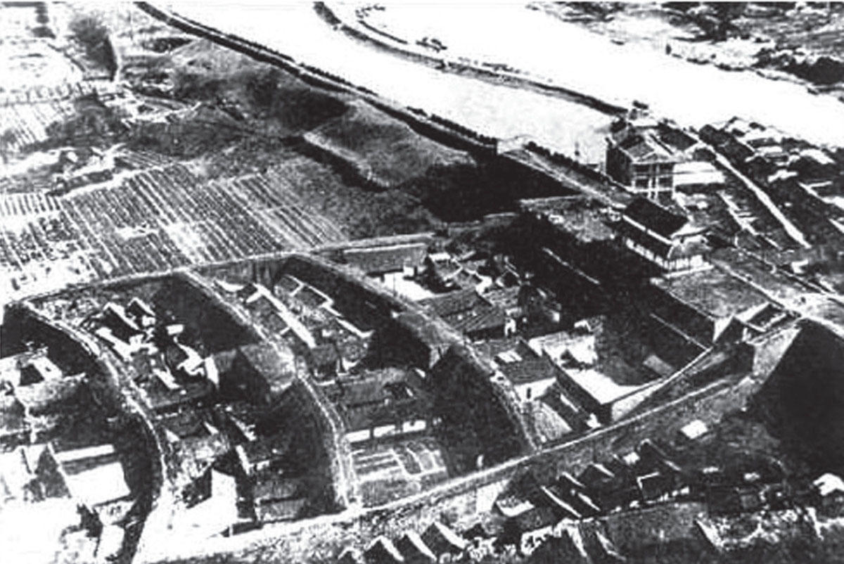 1.明代安顺城军事防御功能的完整再现。从图可见三个层次:首先是外围防御,东南西北四门之外均有军队防地,即设东关、南关,均有围墙应为关防驻所,西门之外设普定站,北门有教场,均为屯兵驻地,构成战时城市的第一道防线;其次为护城河,为卫城四围护幛。从图可见这同样是巨大的城防工程。过去所存史料未见有护城河记载,此为第一次发现;最后为城墙,这是最后一道防线。《黔记》有记:“墙垣周一千二百五十七丈(按明代1丈合3.11米计约7.8里),高二丈,宽二丈,垛口二千二百二十三个,城门楼阁七座,小月楼十一座。”嘉靖三十一年(1552年)副使廖天明在原墙体为土墙的基础上以石垒筑,并加女墙。东南西北四方的城门防御功能完备,从图可见,城门半圆外凸,称月城,又称瓮城,为明代城防特点。