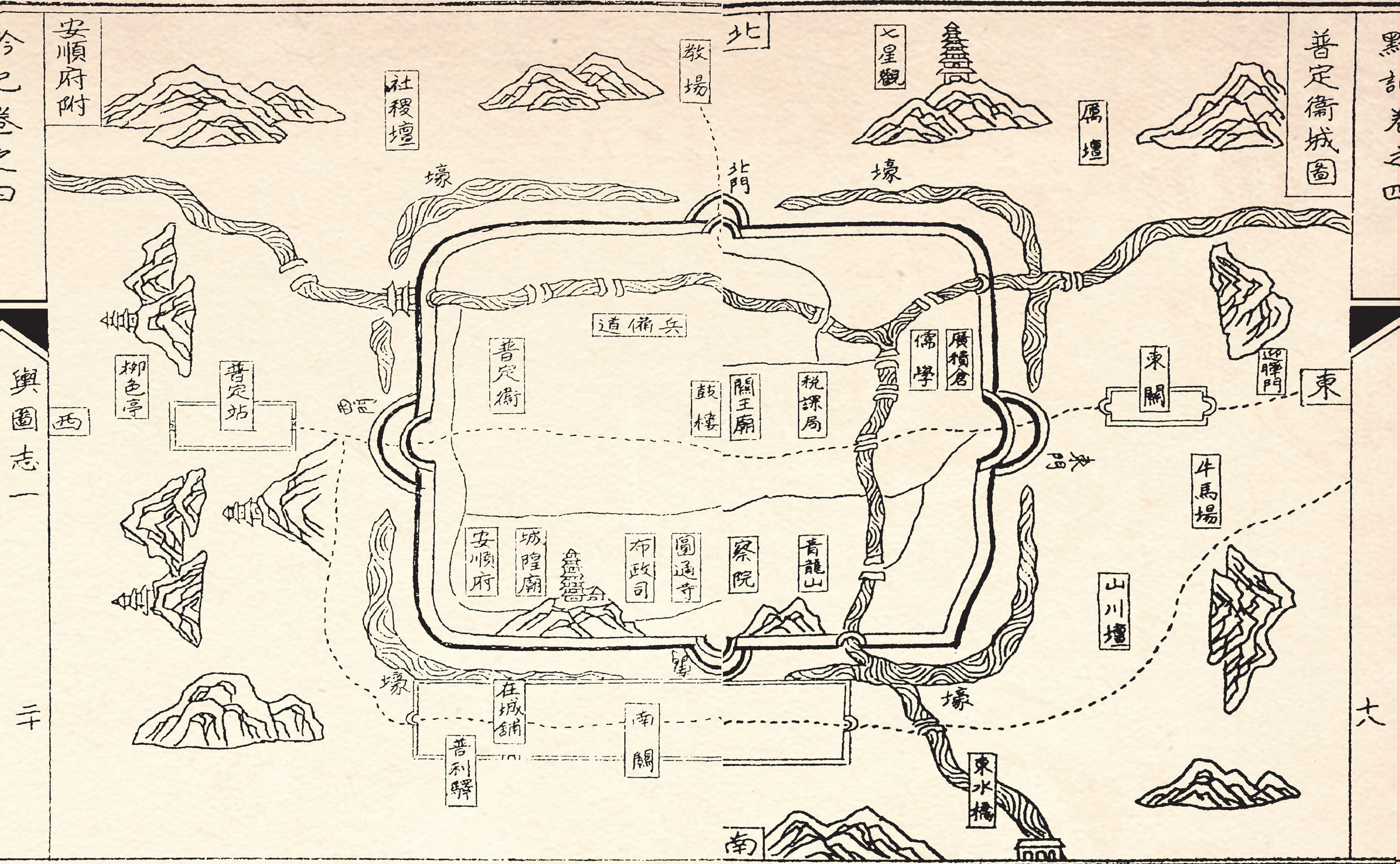 (注: 普定卫城图和安顺府普定卫地理图)
