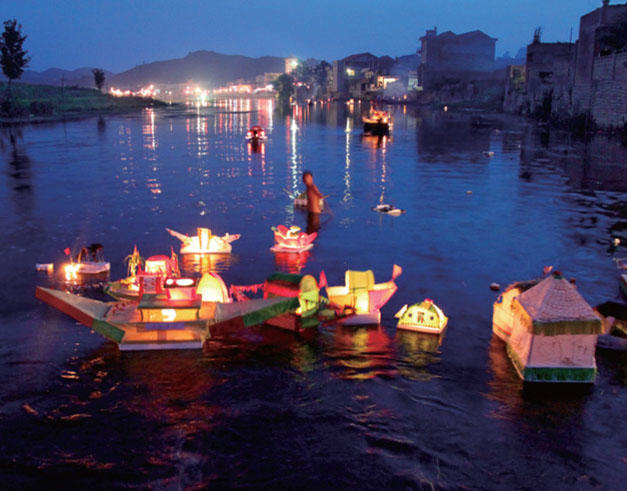 (注: 河灯盛会:天官、地官、水官,官官相连。)