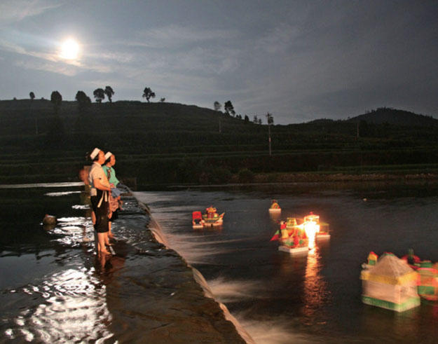 放河灯,体现了屯堡人对先祖亡灵的一种人文关怀。河灯会照亮亡魂们的来回之路,让其与家人团聚,节日一过,便原路返回,以免给在世的人增加麻烦,同时还在阴间保佑人们的平安。