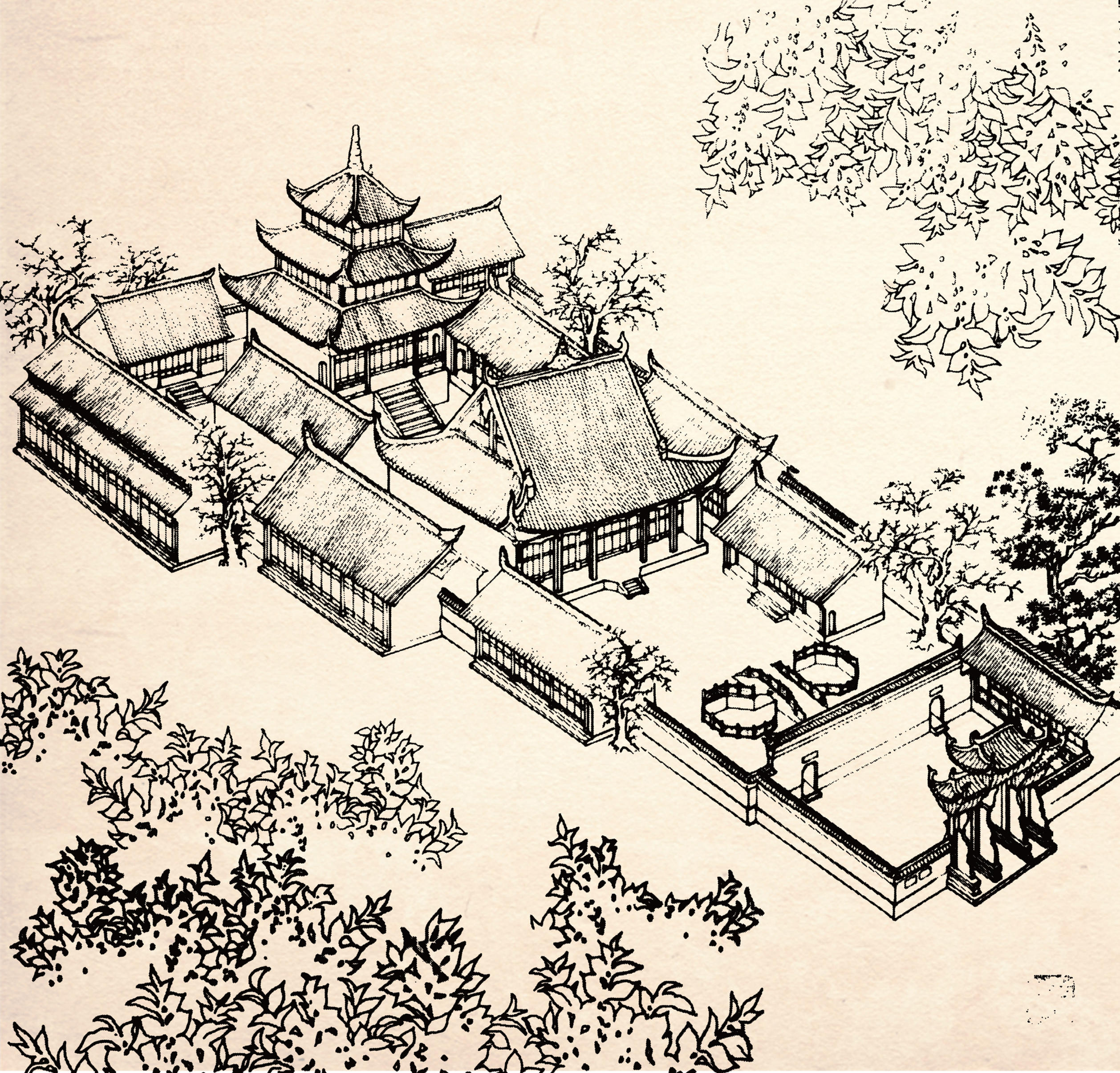 崇真寺由寺门五间、灵官殿、祖师殿、三清殿、玉皇阁、左厢、右厢、后厢组成,占地近四十亩,与城中圆通寺、东岳庙鼎足而立,建筑精实,局势宏敞,为城中大寺院,香火盛极一时。三清殿后玉皇阁为三层四檐歇山式楼阁,前与西秀山塔相对,后与大十字钟鼓楼相埒,再与武庙观音楼、府署左厢伴云楼、圆通寺观音阁相映成趣,成为城中俯瞰全城的登高之处,规划布局之精巧前无古人。历经明、清两朝多次重修扩建,至民国后期仍保持完好。