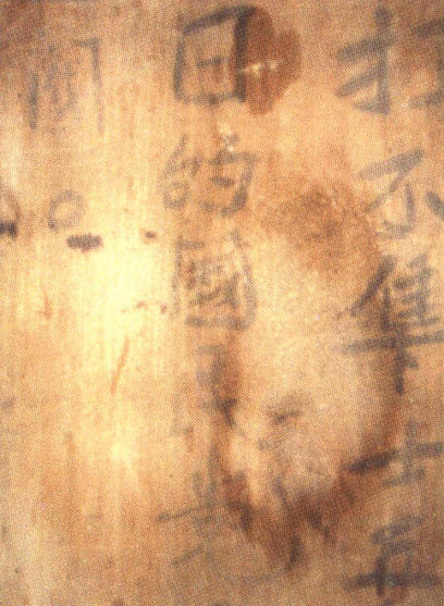 宋光宝家外墙上有一条,有3个字被墨涂抹过,无法辨认。