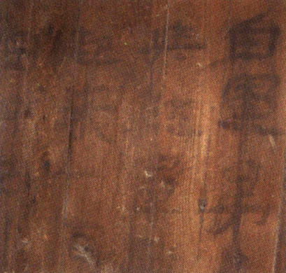 宋升素家老房堂屋里最多,四面板壁上都写满了黑颜色的标语,内容为: