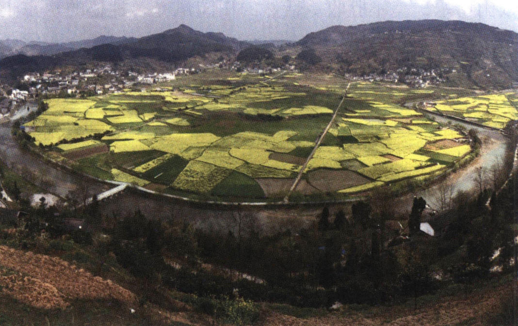 玉带似的清龙河,最先进入禾丰王车村,流出王车时,在宽阔处拐了一个弯,便形成了金盆似的底窝田坝,然后穿村绕寨,流向南江大峡谷。