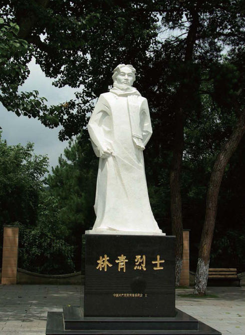 在森林公园大门旁的中共贵阳市委党校校园里,座落着林青烈士雕像,白色的雕像,黑色的底座,雕像后面是一排绿色的樟树——这是贵阳市的市树之一。林青同志1926年加入共青团,1930年加入中国共产党。1935年1月,中共贵州省工作委员会创建,林青任书记兼任遵义县委书记。至此,贵州地下党组织直接得到党中央的领导。同年7月,林青不幸被捕,同年9月被国民党杀害,时年仅24岁。